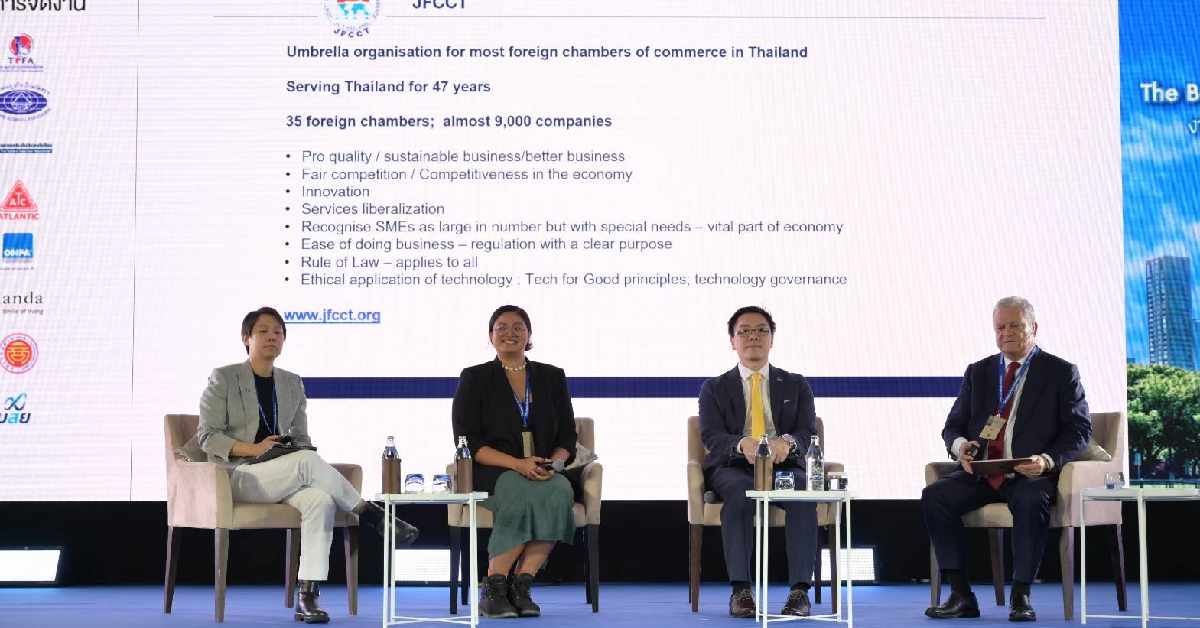 นายสนั่น อังอุบลกุล ประธานกรรมการหอการค้าไทยและสภาหอการค้าแห่งประเทศไทย เปิดเผยว่า เน้นย้ำให้เห็นถึงความสำคัญของการสร้างเครือข่ายความร่วมมือที่แน่นแฟ้น การเป็นสะพานเชื่อมโยงระหว่างภาครัฐและเอกชนทั้งในและต่างประเทศ ปัจจุบันมีสมาชิกและเครือข่ายทั่วประเทศ กว่า 155,000ราย สภาหอการค้าฯ ยังให้ความสำคัญกับเรื่อง “Sustainable” หรือความยั่งยืน โดยภายในงานมีการใช้ Name Tag ที่เป็นมิตรต่อสิ่งแวดล้อม หรือเรียกได้ว่าเป็นนวัตกรรมใหม่ที่สามารถนำไปปลูกเป็นผักได้นอกจากนี้ยังมีการใช้ Electronic Documentแทนการใช้กระดาษให้มากที่สุด การจัดการกับอาหาร ทั้งที่เป็นอาหารส่วนเกิน และเศษอาหารเหลือ รวมทั้งการบริหารจัดการกับสถานที่จัดงาน โดยจากการคำนวณ Carbon Footprint เบื้องต้น ที่เลี่ยงได้จากการจัดงาน อาทิ การลดการใช้กระดาษ ขวดพลาสติก การเดินทาง ฯลฯ รวมแล้วได้กว่า 5,200 กิโลกรัมคาร์บอน เทียบเท่ากับการปลูกต้นไม้ 319 ต้น