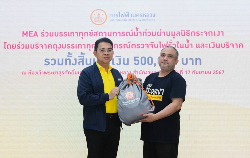นายวิลาศ เฉลยสัตย์ ผู้ว่าการ MEA หรือการไฟฟ้านครหลวง เปิดเผยว่า MEA ร่วมส่งกำลังใจสถานการณ์น้ำท่วมและร่วมมอบเงินบริจาคช่วยเหลือผู้ประสบอุทกภัยจังหวัดเชียงราย จำนวน 500,000 บาท มอบถุงบรรเทาทุกข์ จำนวน 500 ชุด และอุปกรณ์ตรวจจับไฟฟ้ารั่วในน้ำ ให้แก่มูลนิธิกระจกเงา เพื่อนำไปส่งต่อร่วมบริจาคช่วยเหลือผู้ประสบอุทกภัยจังหวัดเชียงราย