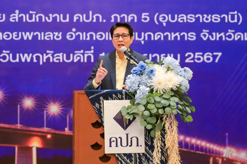 นางสาววสุมดี วสีนนท์ รองเลขาธิการ ด้านกำกับคนกลางและประกันภัยภูมิภาค สำนักงานคณะกรรมการกำกับและส่งเสริมการประกอบธุรกิจประกันภัย (สำนักงาน คปภ.) เป็นประธานเปิดโครงการส่งเสริมผลิตภัณฑ์ประกันภัยเชิงรุกสู่ระดับภูมิภาคอย่างยั่งยืน ประจำปี 2567 พร้อมด้วยคณะผู้บริหารสำนักงาน คปภ. ผู้บริหารสมาคมประกันชีวิตไทย และผู้บริหารสมาคมประกันวินาศภัยไทย ลงพื้นที่จังหวัดมุกดาหาร จัดโดยสำนักงาน คปภ. ภาค 5 (อุบลราชธานี) และ สำนักงาน คปภ.จังหวัดมุกดาหาร