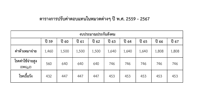 สมาคมโรงพยาบาลเอกชนจึงเรียกร้องให้สำนักงานประกันสังคมพิจารณาทบทวนอัตราค่าตอบแทนอย่างน้อยปีละ 1 ครั้ง และปรับระบบการจ่ายค่ารักษาสำหรับโรคที่มีค่าใช้จ่ายสูงให้อยู่ในระดับที่เหมาะสม โดยเสนอให้กำหนดอัตราขั้นต่ำที่ 15,000 บาทต่อหน่วย Adjusted RW เพื่อให้โรงพยาบาลสามารถดำเนินการได้อย่างยั่งยืน และลดภาระทางการเงิน -511 .-สำนักข่าวไทย