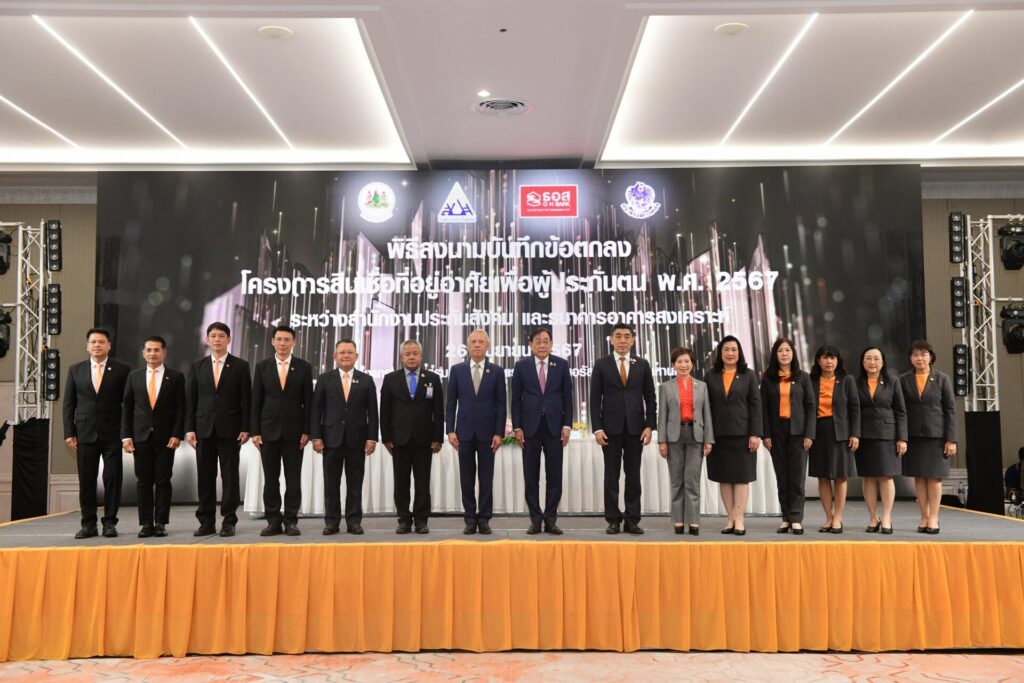 ธอส. จึงร่วมกับสำนักงานประกันสังคม โดยนายบุญสงค์ ทัพชัยยุทธ์ เลขาธิการสำนักงานประกันสังคม ลงนามบันทึกข้อตกลงความร่วมมือ (MOU) “โครงการสินเชื่อที่อยู่อาศัยเพื่อผู้ประกันตน พ.ศ. 2567” โดยได้รับเกียรติจากนายพิชัย ชุณหวิชร รองนายกรัฐมนตรี และรัฐมนตรีว่าการกระทรวงการคลัง และนายพิพัฒน์ รัชกิจประการ รัฐมนตรีว่าการกระทรวงแรงงาน เป็นประธานในพิธีลงนาม MOU ระหว่าง ธอส. และ สำนักงานประกันสังคม วงเงิน 10,000 ล้านบาท ปล่อยสินเชื่ออัตราดอกเบี้ยต่ำ 5 ปีแรก เพียง 1.59% ต่อปี, ปีที่ 6 – 8 เท่ากับ MRR – 2.00% ต่อปี และปีที่ 9 จนถึงตลอดอายุสัญญา เท่ากับ MRR – 0.50% ต่อปี (อัตราดอกเบี้ย MRR ของ ธอส. ปัจจุบันเท่ากับ 6.545% ต่อปี) ให้กับผู้ประกันตนตามมาตรา 33, 39 หรือ 40 ได้มีที่อยู่อาศัยเป็นของตนเองเพิ่มมากขึ้น โดยสามารถขอสินเชื่อเพื่อซื้อหรือปลูกสร้างที่อยู่อาศัย ภายใต้วงเงินกู้ไม่เกิน 2 ล้านบาท