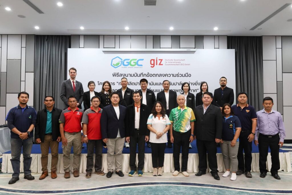 กรุงเทพฯ 30 ก.ย.-บริษัท โกลบอลกรีนเคมิคอล จำกัด (มหาชน) หรือ GGC ร่วมกับองค์กรความร่วมมือระหว่างประเทศของเยอรมัน หรือ GIZ ประจำประเทศไทย กรมวิชาการเกษตร โรงงานสกัดน้ำมันปาล์ม และกลุ่มเกษตรกรผู้ผลิตปาล์มน้ำมันรายย่อย 4 จังหวัดภาคใต้ ต่อยอดความสำเร็จ ยกระดับจากการผลิตปาล์มอย่างยั่งยืนสู่การผลิตปาล์มน้ำมันแบบคาร์บอนต่ำ
