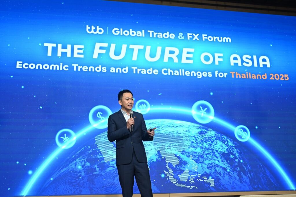 ทีเอ็มบีธนชาต หรือ ทีทีบี จัดสัมมนา ttb I Global Trade & FX Forum ภายใต้หัวข้อ “The Future of Asia : Economic Trends and Trade Challenges for Thailand 2025”โดยมีผู้เชี่ยวชาญจากหลายด้านมาให้ความรู้ผุ้ประกอบการไทย