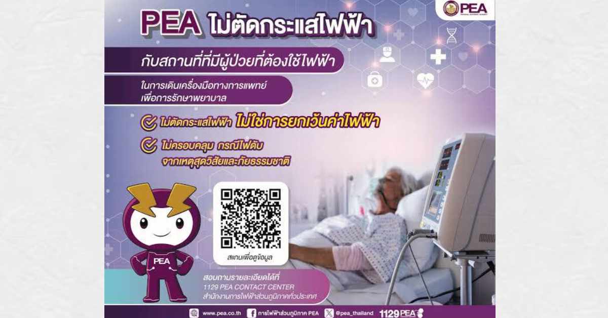 กรุงเทพฯ 3 ต.ค. – PEA เร่งตรวจสอบกรณีผู้ป่วยติดเตียงเสียชีวิตที่นครพนม ยืนยันนโยบายไม่ตัดกระแสไฟฟ้าสถานที่หรือบ้านที่มีผู้ป่วยที่ต้องใช้ไฟฟ้าในการเดินเครื่องมือทางการแพทย์เพื่อการรักษาพยาบาล