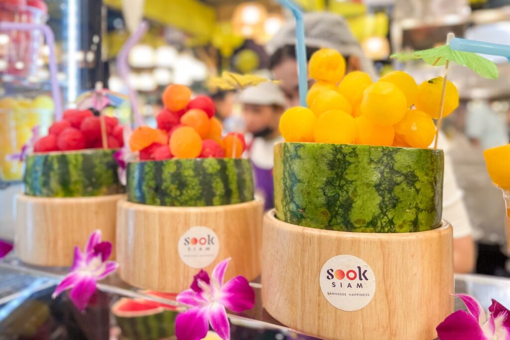 ภายในงานจะได้พบกับเมนูเจแสนอร่อยจาก 4 ภาคของประเทศไทย รวมถึงเมนูเด็ดจากพันธมิตรกะทิเรียลไทย และร้านค้าชื่อดังภายในเมืองสุขสยาม มานำเสนออย่างละลานตา อาทิ ข้าวอบเผือก, ผัดหมี่ซั่วเจ, เป็ดพะโล้เจ, จับฉ่ายเจ, กะหล่ำปลีตุ๋นเห็ดหอม, ผัดคะน้าฮ่องกงเป๋าฮื้อเจ, ขนมจีนแกงเขียวหวานยอดมะพร้าวเต้าหู้, คั่วกลิ้งเจ, ลาบเจ, โปรตีนเกษตรผัดพริกขิง, จิวแป๊ะธงราดน้ำบ๊วย, ต้มเค็มหมี่กึง, น้ำพริกเผาเห็ดหอม, เห็ดสวรรค์สมุนไพร, เห็ดสวรรค์งาขาว, ฟองเต้าหู้ฮ่องกง 3 รส, เต้าหู้ม้ง(ไทยใหญ่), ปอเปี๊ยะทอด, เผือกทอดและผักทอดเจ, แฮกึ๊นเผือก, แฮกี๊นไชเท้า, ปิ้งย่างหม่าล่าเจ, เมนูลูกชิ้นเจลวกจิ้ม ทั้งลูกชิ้นหอมเจ, ลูกชิ้นเจไส้ผัก และอีกสารพัด อีกทั้งยังมีเมนูเจจากร้าน “ฮั่วเซ่งฮง” อย่าง หมูกรอบจำแลง, ลาบแพลนต์เบสทอด, เส้นมันผัดเจ, เต้าหู้ทอดเห็ดเข็มทองผงปาปริก้า ตลอดจนเมนูกาแฟเจของร้าน “ลุงเงินกาแฟหม้อดิน” จากจังหวัดเชียงใหม่ ผลไม้ และเครื่องดื่ม ม็อกเทลอีกมากมาย พร้อมทั้งสัมผัสเสน่ห์แท้แห่งรสไทย กับกะทิขวดเรียลไทย กะทิไทยแท้ 100% โดยบริษัท ไทย อกริ ฟู้ดส์ จํากัด (มหาชน) ในงานนี้มีจำหน่ายเมนูที่ฮอตฮิตติดกระแสกับ สเลอปี้ชาไทย ที่ให้ความเข้มข้น หอมมัน กะทิและชาไทยได้อย่างลงตัว พร้อมทั้งกิจกรรม Cooking Show วันศุกร์,เสาร์และอาทิตย์ พบกับเมนูเจที่รังสรรค์โดยกะทิขวดเรียลไทย และโปรโมชันพิเศษภายในเมืองสุขสยามเท่านั้น