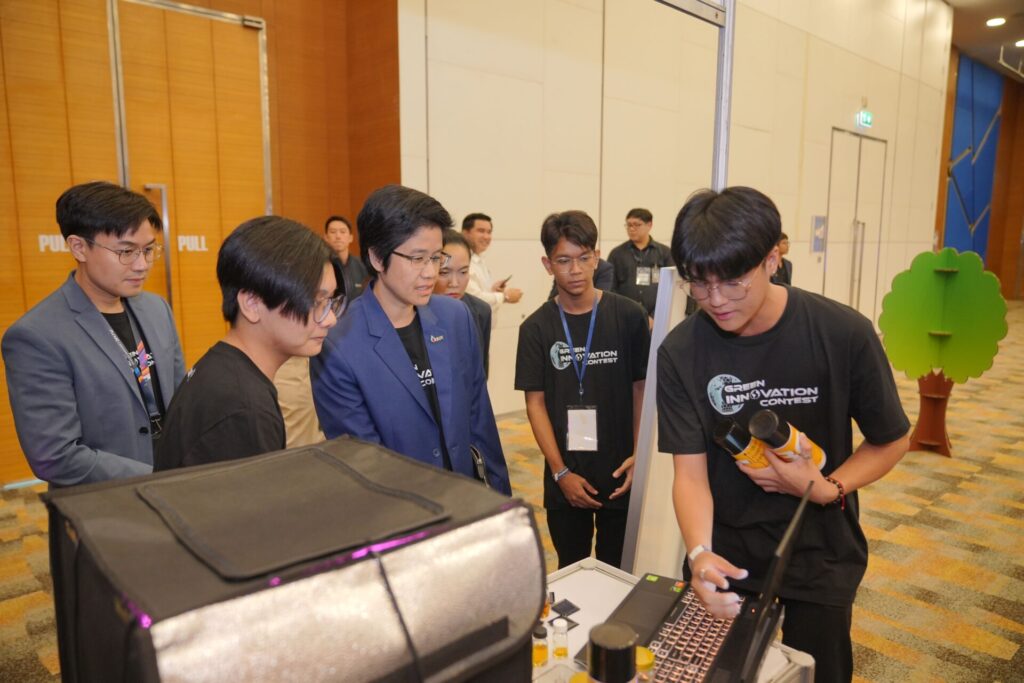 นางสาวราชสุดา รังสิยากูล รองประธานเจ้าหน้าที่บริหารกิจการพิเศษ 1 บริษัท ปตท. น้ำมันและการค้าปลีก จำกัด (มหาชน) หรือ OR มอบรางวัลและแสดงความยินดีแก่ทีมที่ได้รับรางวัลจากการประกวดโครงการ “Green Innovation Contest” ประจำปี 2567 โครงการ “Green Innovation Contest” จัดขึ้นเป็นครั้งแรก ในหัวข้อ “นวัตกรรมสีเขียวเพื่อโลกที่ยั่งยืน” โดยมุ่งหวังสนับสนุนให้เยาวชนไทยแสดงศักยภาพในการแก้ไขปัญหาสิ่งแวดล้อมผ่านการสร้างสรรค์นวัตกรรมและสิ่งประดิษฐ์ ซึ่งถือเป็นก้าวสำคัญในการจัดการขยะอย่างมีประสิทธิภาพ และสามารถต่อยอดให้เกิดประโยชน์ต่อสังคม ชุมชน และประเทศชาติ ซึ่งมีเยาวชนจากทั่วประเทศ กว่า 100 ทีม ร่วมส่งผลงานเข้าประกวด โดยทีมที่ได้รับรางวัล มีดังต่อไปนี้