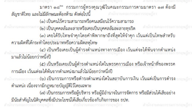(7) เป็นกรรมการหรือผู้บริหาร หรือผู้มีอำนาจในการจัดการ หรือมีส่วนได้เสีย อย่างมีนัยสำคัญในนิติบุคคล ซึ่งมีประโยชน์ได้เสียเกี่ยวข้องกับกิจการของ ธปท. ดังเช่น