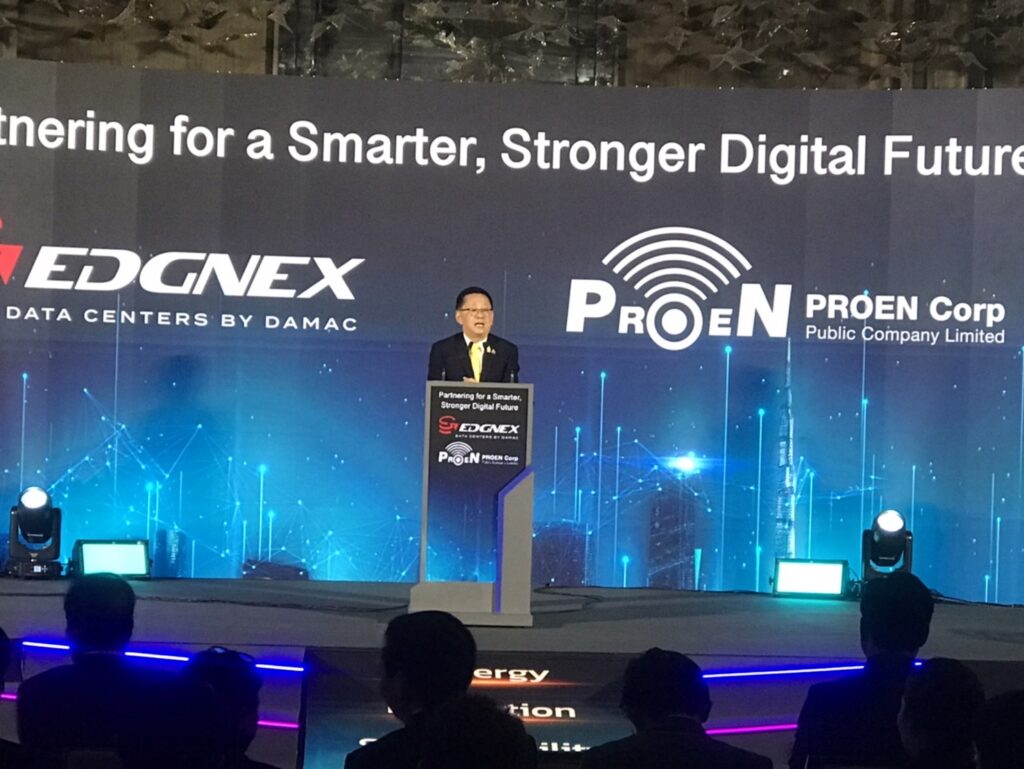 นายประเสริฐ จันทรรวงทอง รองนายกรัฐมนตรีและรัฐมนตรีว่าการกระทรวงดิจิทัลเพื่อเศรษฐกิจและสังคม เป็นประธานในการประกาศการลงทุนระหว่าง DAMAC Group ของสหรัฐอาหรับเอมิเรตส์ที่ได้ก่อตั้งบริษัท EDGNEX Data Centers เพื่อมาลงทุนในไทยโดยได้ร่วมลงทุนกับบริษัท โปรเอ็น คอร์ป จำกัด (มหาชน) บริษัทชั้นนำในด้านเทคโนโลยีของประเทศไทย โดยการจับมือกันครั้งนี้ เป็นการขยายธุรกิจครั้งใหญ่ของทั้งสองบริษัทในประเทศไทยที่สอดคล้องกับความมุ่งมั่นในการสนับสนุนและพัฒนาด้านดิจิทัล ในภูมิภาคเอเชียตะวันออกเฉียงใต้ โดยจะมีการลงทุนกว่า 32,000 ล้านบาท ในโครงการพัฒนาศูนย์ข้อมูล เทคโนโลยีและ AI ขั้นสูงซึ่ง EDGNEX จะถือหุ้น 70% ในการร่วมทุนและเป็นหัวเรือใหญ่ รับผิดชอบงานบริการด้านดาต้า เซอร์วิส (Data Services) ส่วนบริษัท โปรเอ็น คอร์ป จำกัด (มหาชน) จะถือหุ้น 30%