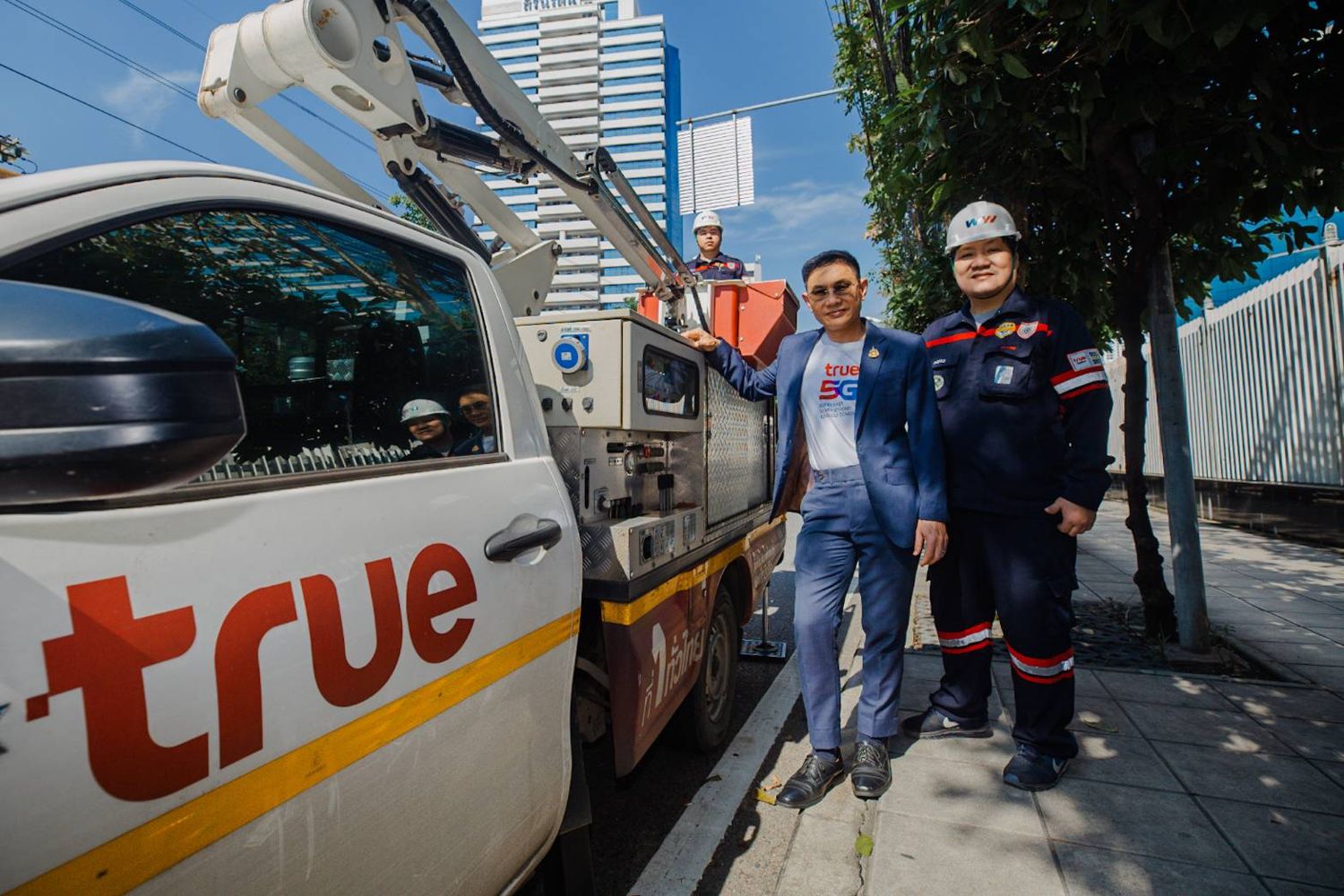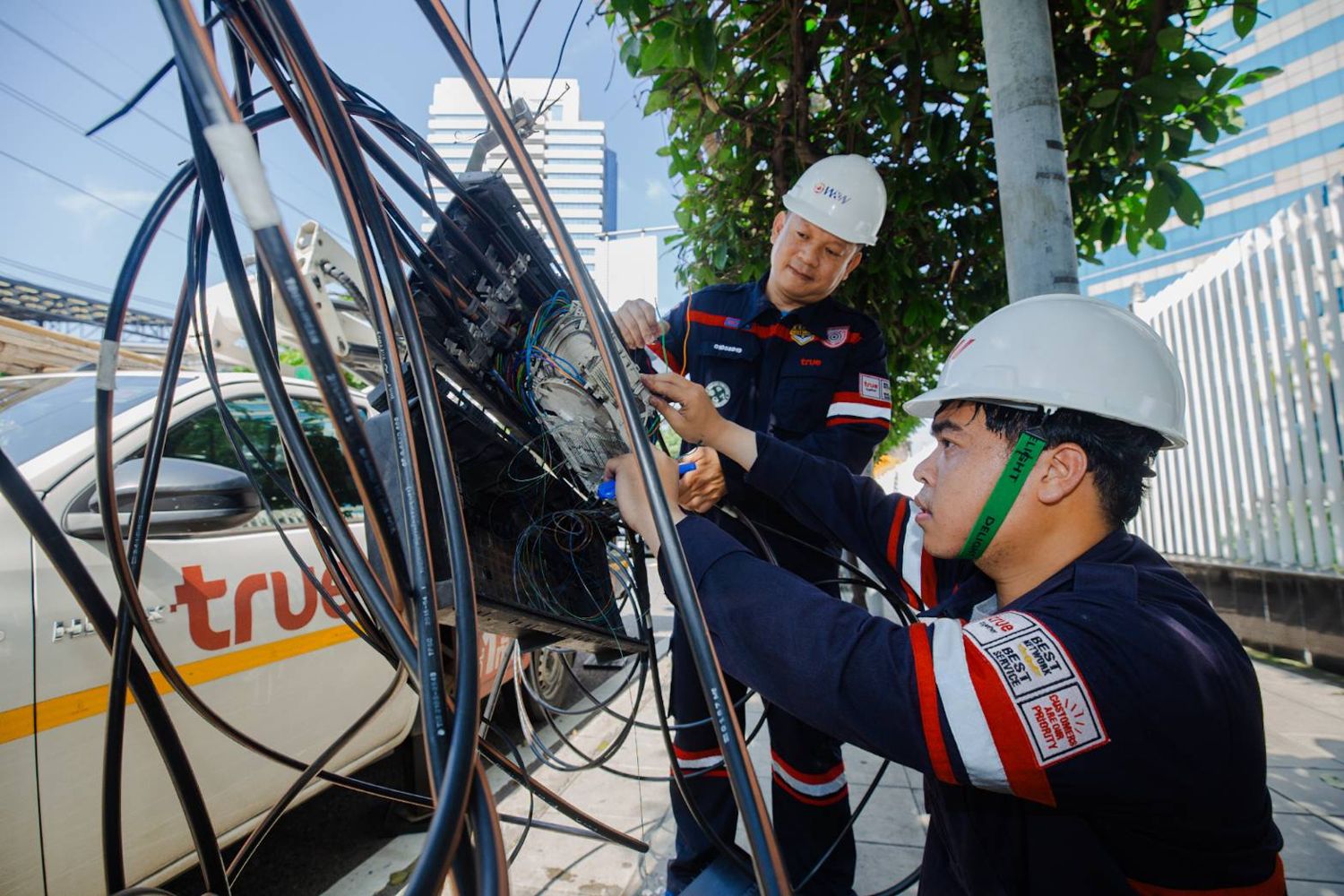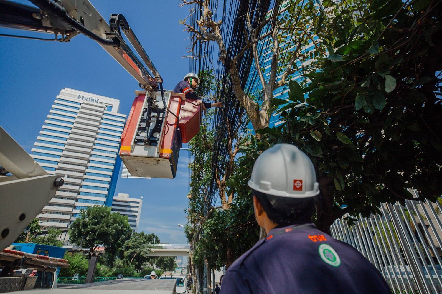 เร่งดำเนินการรื้อถอนสายสื่อสารถนนพระราม 4 ทรู คอร์ปอเรชั่น โดย นายเลิศรัตน์ รตะนานุกูล หัวหน้าสายงานรัฐกิจสัมพันธ์ นำทีมวิศวกรพื้นที่ร่วมปฏิบัติการสนับสนุน การไฟฟ้านครหลวง (MEA) โดย นายวิลาศ เฉลยสัตย์ ผู้ว่าการฯ พร้อมด้วย กรุงเทพมหานคร โดย นายชัชชาติ สิทธิพันธุ์ ผู้ว่าราชการฯ, กสทช. โดย ผศ.ดร.สาวัสดิ์ บุณยะเวศ ที่ปรึกษา และภาคีเครือข่ายที่เกี่ยวข้อง ร่วมดำเนินงานรื้อถอนสายสื่อสารที่ยกเลิกการใช้งานแล้วบนเสาไฟฟ้า หลังจากติดตั้งโครงข่ายเส้นใยแก้วนำแสง Fiber Optic Cable (FOC) ฝังในระดับใต้ดิน เพื่อใช้ทดแทนสายสื่อสารเดิม ย่านถนนพระราม 4 ช่วงแยกคลองเตย ถึงถนนสุขุมวิท