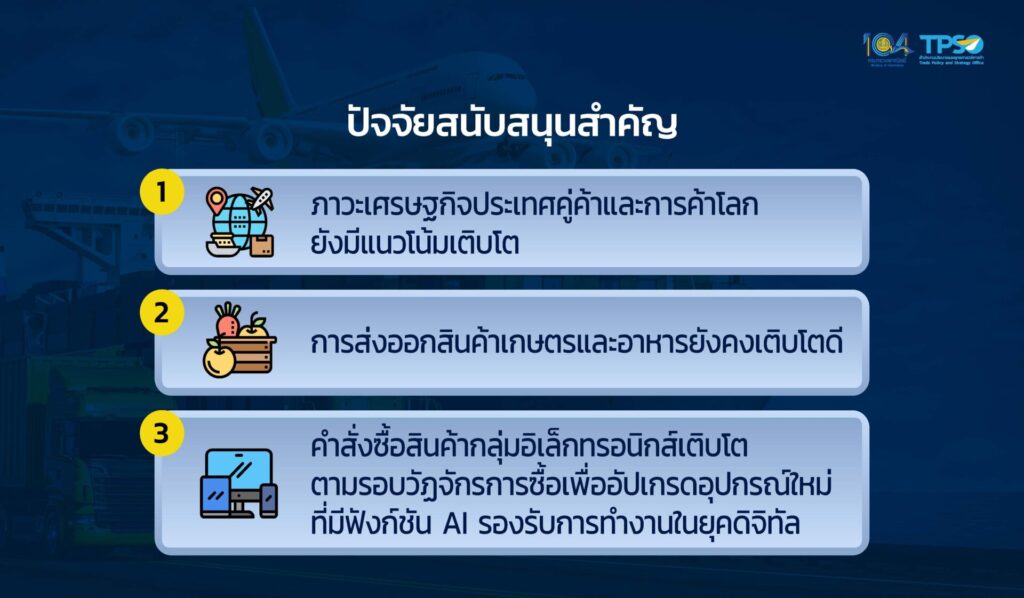 กระทรวงพาณิชย์ คาดว่าการส่งออกในไตรมาส 4 ของปี 67 แม้เผชิญกับความท้าทายหลายประการ เช่น การเลือกตั้งในสหรัฐฯ ปัญหาภูมิรัฐศาสตร์ การแข็งค่าของเงินบาท ปัญหาอุทกภัย กระทบต่อผลผลิตสินค้าเกษตร การเปลี่ยนแปลงนโยบายการส่งออกข้าวของอินเดีย อาจกระทบการส่งออกข้าวไทย ยังมองว่า การส่งออกทั้งปี 67 คาดว่าทำได้เกินเป้าหมายที่ร้อยละ 2 โดยยังลุ้นทำสถิตินิวไฮมูลค่าส่งออกเกิน 290,000 ล้านดอลลาร์สหรัฐ. -515 สำนักข่าวไทย