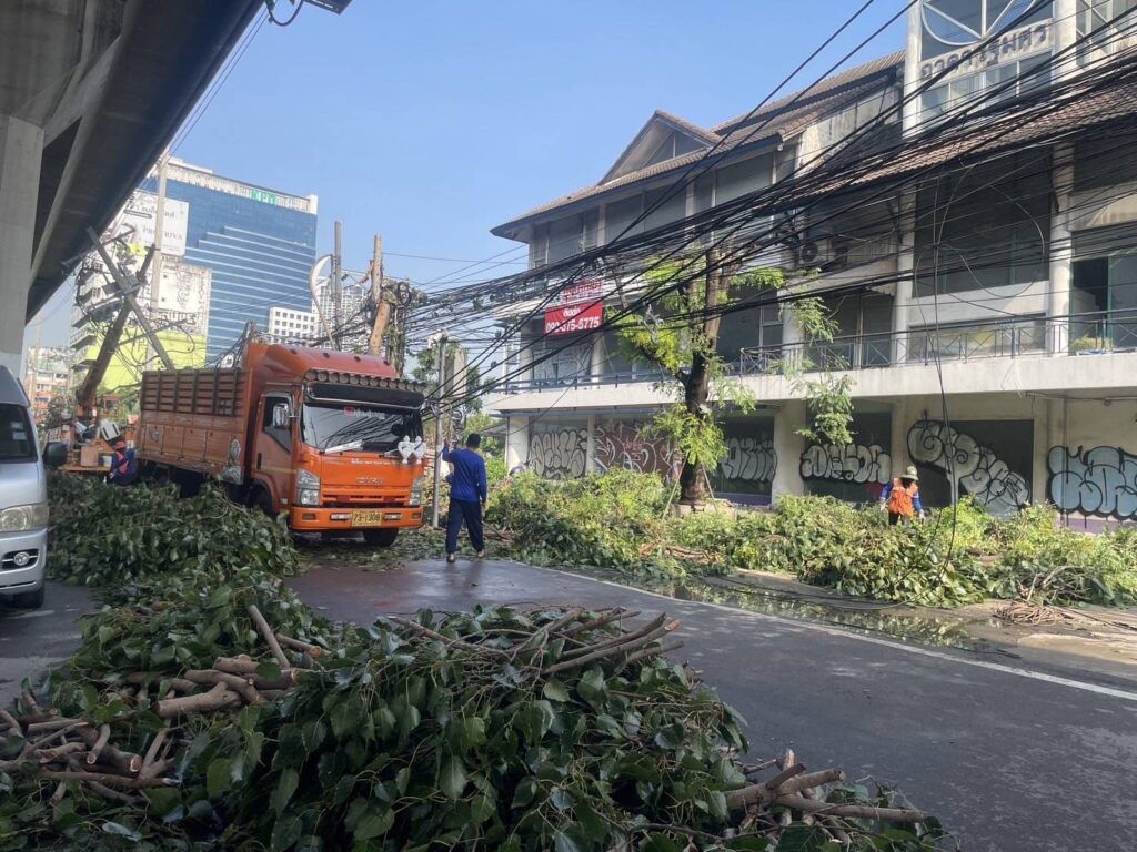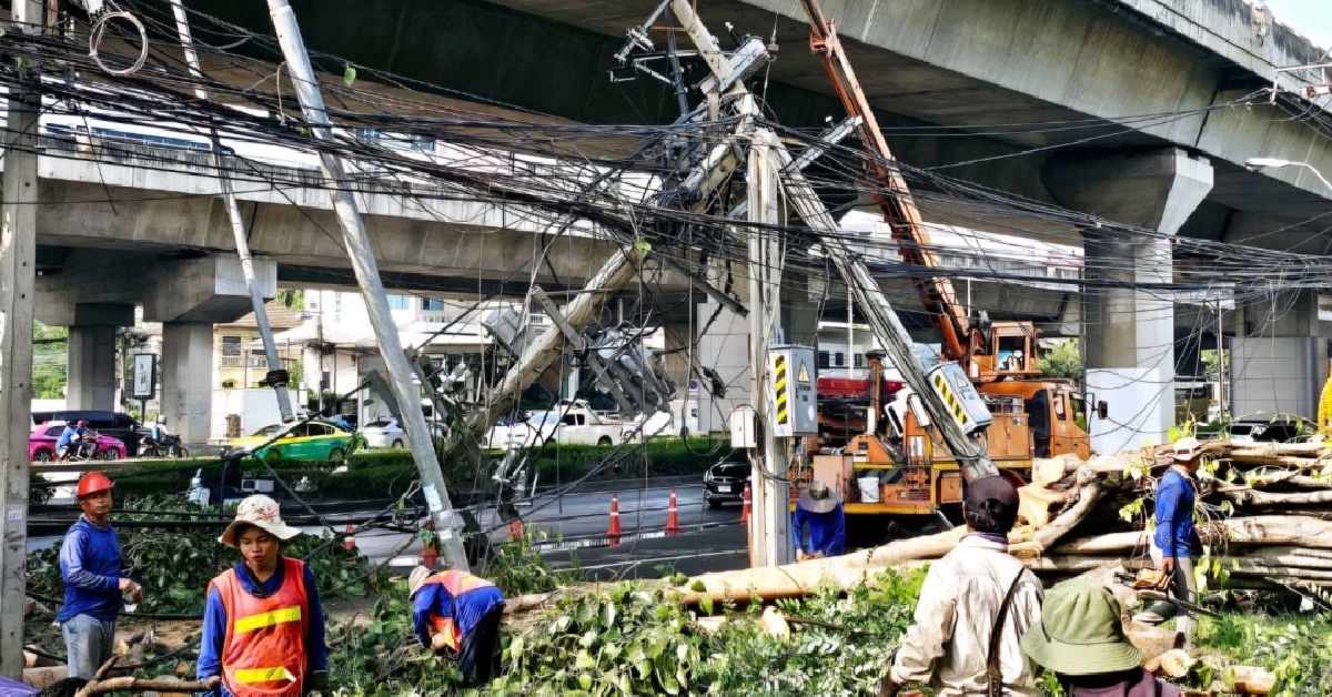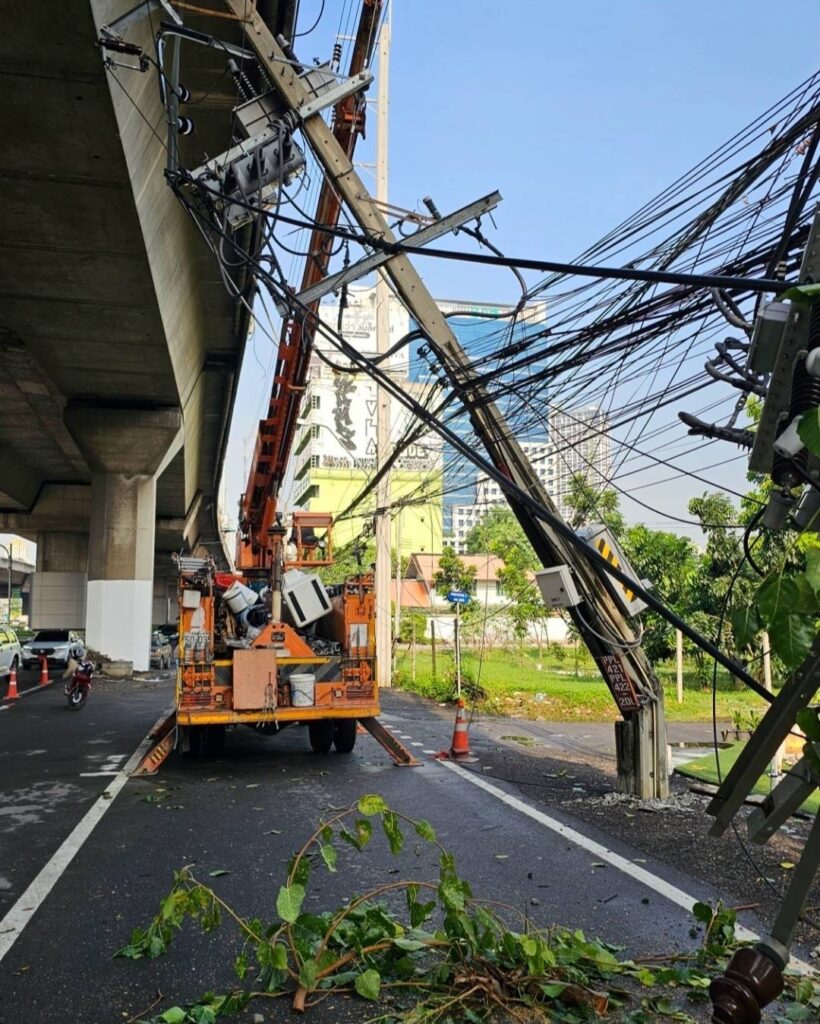 กรุงเทพฯ 30 ต.ค. – MEA ระดมเจ้าหน้าที่เร่งแก้ไขเหตุต้นไม้รั้งเสาไฟล้ม 7 ต้น บริเวณ ซ.พระราม 9 จากเหตุฝนตกพายุลมแรง