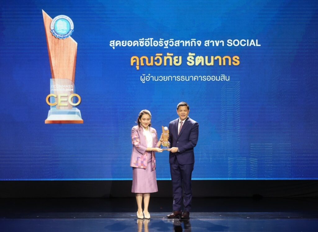 นายวิทัย รัตนากร ผู้อำนวยการธนาคารออมสิน รับ 3 รางวัลสุดยอดซีอีโอ “CEO Econmass Awards 2024” จากนางสาวเเพทองธาร ชินวัตร นายกรัฐมนตรี เป็นประธานมอบรางวัล ซึ่งสมาคมผู้สื่อข่าวเศรษฐกิจ คณะกรรมการร่วมภาคเอกชน 3 สถาบัน (กกร.) สำนักงานคณะกรรมการนโยบายรัฐวิสาหกิจ (สคร.) และมหาวิทยาลัยหอการค้าไทยจัดขึ้นต่อเนื่องเป็นปีที่ 3