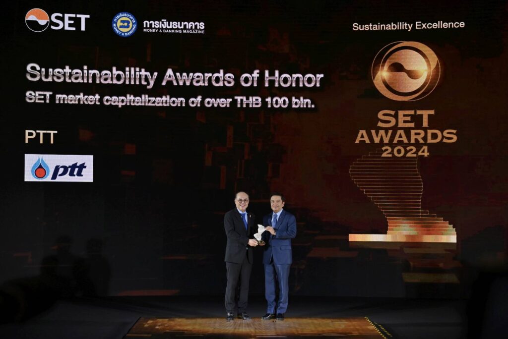 ดร.คงกระพัน อินทรแจ้ง ประธานเจ้าหน้าที่บริหารและกรรมการผู้จัดการใหญ่ บริษัท ปตท. จำกัด (มหาชน) (ปตท.) เปิดเผยว่า ปตท. ได้รับรางวัล SET Awards ประจำปี 2024 ที่จัดขึ้นโดย ตลาดหลักทรัพย์แห่งประเทศไทย ร่วมกับวารสารการเงินธนาคาร รวม 2 รางวัล ประกอบด้วย รางวัลเกียรติยศแห่งความสำเร็จด้านความยั่งยืน (Sustainability Awards of Honor) และรางวัลเกียรติยศแห่งความสำเร็จด้านนวัตกรรม (SET Awards of Honor) สะท้อนเจตนารมณ์ของ ปตท. ที่ให้ความสำคัญกับการบริหารธุรกิจแบบยั่งยืนในทุกมิติ การลงทุนต้องเกิดประโยชน์ทั้งกับองค์กรและประเทศ พร้อมสร้างความเชื่อมั่นให้ทุกภาคส่วน และสร้างพลังร่วมภายในกลุ่ม ปตท. ภายใต้วิสัยทัศน์ “ปตท. แข็งแรงร่วมกับสังคมไทย และเติบโตในระดับโลกอย่างยั่งยืน” นับเป็นปีที่ 4 ของ ปตท. ที่ได้รับรางวัลเกียรติยศแห่งความสำเร็จด้านความยั่งยืน (Sustainability Awards of Honor) ซึ่งเป็นผลจากความมุ่งมั่นจากการดำเนินงานจนได้รับรางวัล Best Sustainability Awards อย่างต่อเนื่อง