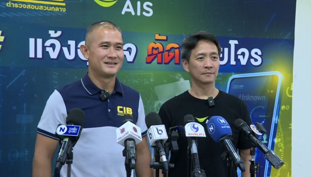 พล.ต.ท.จิรภพ ภูริเดช ผู้บัญชาการตำรวจสอบสวนกลาง (CIB) และนายปรัธนา ลีลพนัง หัวหน้าคณะผู้บริหาร กลุ่มลูกค้าทั่วไป AIS แถลงความร่วมมือพร้อมเปิดตัวบริการแจ้งอุ่นใจ ตัดสายโจร ซึ่งเป็นการทำงานร่วมกันของตำรวจสอบสวนกลาง (CIB) และ AIS เพื่อปราบปรามกลุ่มมิจฉาชีพและแก๊งคอลเซ็นเตอร์