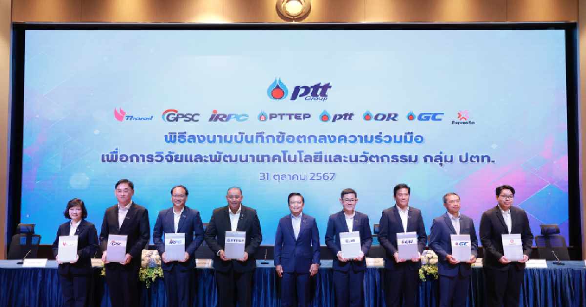 นอกจากนี้ กลุ่ม ปตท. จะแบ่งปันประสบการณ์ด้านการลงทุนและแสวงหาความร่วมมือเพื่อต่อยอดธุรกิจนวัตกรรมใหม่ ตลอดจนการใช้ประโยชน์จากผลงานวิจัยและพัฒนา อาทิ ทรัพย์สินทางปัญญา และผลิตภัณฑ์ภายใต้บัญชีนวัตกรรม มุ่งวางรากฐานและขับเคลื่อนนวัตกรรมกลุ่ม ปตท. และประเทศให้เติบโตอย่างยั่งยืน โดยมี ดร.บุรณิน รัตนสมบัติ ประธานเจ้าหน้าที่ปฏิบัติการกลุ่มธุรกิจใหม่และความยั่งยืน บริษัท ปตท. จำกัด (มหาชน) นายมนตรี ลาวัลย์ชัยกุล ประธานเจ้าหน้าที่บริหาร บริษัท ปตท.สำรวจและผลิตปิโตรเลียม จำกัด (มหาชน) นายดิษทัต ปันยารชุน ประธานเจ้าหน้าที่บริหาร บริษัท ปตท. น้ำมันและการค้าปลีก จำกัด (มหาชน) นายเทอดเกียรติ พร้อมมูล ประธานเจ้าหน้าที่บริหารและกรรมการผู้จัดการใหญ่ บริษัท ไออาร์พีซี จำกัด (มหาชน) นายณะรงค์ศักดิ์ จิวากานันต์ ประธานเจ้าหน้าที่บริหาร บริษัท พีทีที โกลบอล เคมิคอล จำกัด (มหาชน) นายวรวัฒน์ พิทยศิริ ประธานเจ้าหน้าที่บริหารและกรรมการผู้จัดการใหญ่ บริษัท โกลบอล เพาเวอร์ ซินเนอร์ยี่ จำกัด (มหาชน) นางวนิดา บุญภิรักษ์ รองกรรมการผู้จัดการใหญ่ด้านการเงินและบัญชี บริษัท ไทยออยล์ จำกัด (มหาชน) และนายสวรา แขวงโสภา กรรมการ บริษัท เอ็กซ์เพรสโซ เอ็นบี จำกัด ร่วมพิธีลงนาม.-517-สำนักข่าวไทย