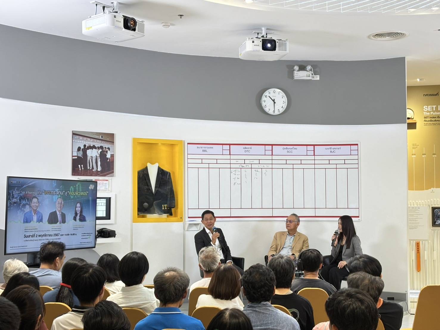 ในโอกาสตลาดหลักทรัพย์ฯ ก้าวสู่ปีที่ 50 พิพิธภัณฑ์เรียนรู้การลงทุน INVESTORY จัดกิจกรรมเสวนา Plearn Talk & Tour ตอน จาก “เคาะกระดาน” สู่ “คอมพิวเตอร์” โดยมี นายบรรยง พงษ์พานิช ประธานกรรมการบริหาร ธนาคารเกียรตินาคินภัทร และ นายสมคิด จิรานันตรัตน์ ผู้เชี่ยวชาญด้านเทคโนโลยีดิจิทัล อดีตประธาน Kasikorn Business Technology Group (KBTG) ร่วมถ่ายทอดประสบการณ์ย้อนอดีตระบบการซื้อขายหุ้นจากเคาะกระดานสู่คอมพิวเตอร์เป็นครั้งแรก โดยมี นางสาวเดือนเพ็ญ จันทร์ศิริศรี ผู้อำนวยการ ฝ่ายพัฒนาความรู้การเงินขั้นพื้นฐาน ตลาดหลักทรัพย์ฯ ให้การต้อนรับ