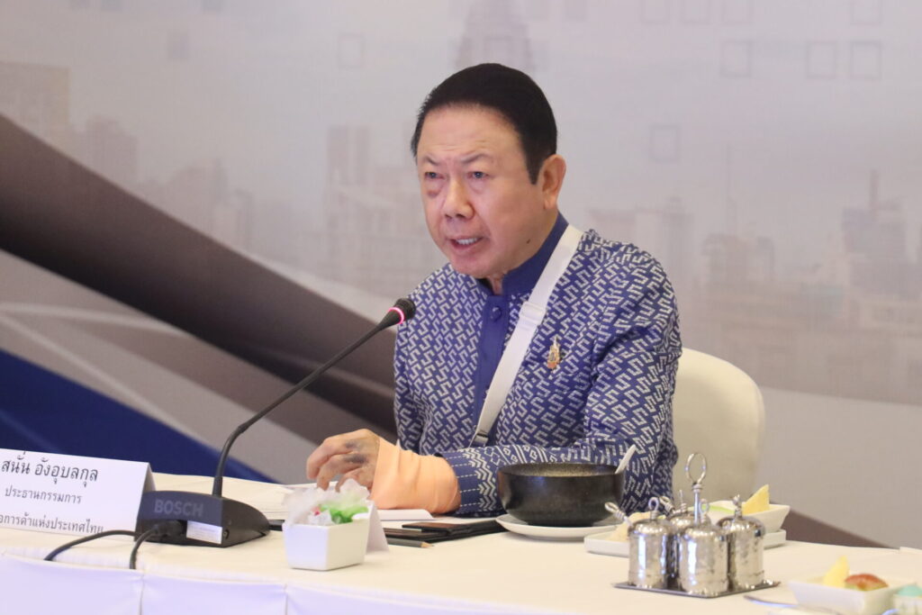 นายสนั่น เปิดเผยว่า เศรษฐกิจไทยปี 2567 มีแนวโน้มขยายตัวได้ที่ 2.6-2.8% สูงกว่าประมาณการเดิม จากแรงขับเคลื่อนของการส่งออกที่ได้รับอานิสงส์จากวัฏจักรขาขึ้นของกลุ่มอิเล็กทรอนิกส์ ที่ส่งผลให้การส่งออกสามารถเติบโตได้ 2.5-2.9% สูงกว่าประมาณการเดิม ประกอบกับมีปัจจัยหนุนจากการกระตุ้นกำลังซื้อ และการเร่งเบิกจ่ายงบประมาณของภาครัฐ นอกจากนี้ มาตรการภาครัฐทั้งระยะสั้น ระยะกลาง และระยะยาว ที่กำลังจะทยอยออกมา อาทิ การช่วยเหลือลูกหนี้รายย่อยและกลุ่มผู้ประกอบการ SME การปรับกฎหมายเกี่ยวกับการเช่าที่ดินระยะยาว 99 ปีเพื่อดึงดูดการลงทุนจากต่างประเทศ ถือเป็นกลไกสำคัญในการแก้ปัญหาเชิงโครงสร้างและสร้างความเชื่อมั่นต่อการเติบโตของเศรษฐกิจในระยะข้างหน้า ที่ประชุม กกร.จึงปรับเพิ่มกรอบประมาณการเศรษฐกิจปี 2567 ณ เดือนพฤศจิกายน 2567 อยู่ที่ 2.6 ถึง 2.8% จากเดิมประมาณการไว้ที่ 2.2 ถึง 2.7% และปรับตัวเลขประมาณการภาคการส่งออก ในกรอบ 2.5 ถึง 2.9% จากเดิม 1.5 ถึง 2.5% ส่วนเงินเฟ้อยังคงไว้ที่ 0.5-1.0 โดย ในระยะถัดไปเศรษฐกิจมีสัญญานการฟื้นตัวจากมาตรการกระตุ้นกำลังซื้อของภาครัฐ