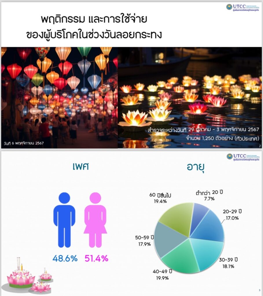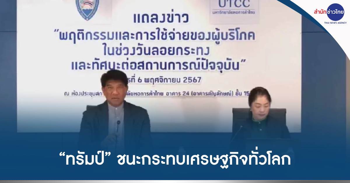 กรุงเทพฯ 6 พ.ย. – ม.หอการค้าไทย ระบุ “ทรัมป์” ชนะเลือกตั้ง กระทบเศรษฐกิจทั่วโลกชะลอตัว แนะรัฐบาลเร่งออกมาตรการกระตุ้นเศรษฐกิจปลายปี เพิ่มเม็ดเงินหมุนเวียนใหม่นับแสนล้านบาท เผยชาวบ้านใช้จ่าย “ลอยกระทง” สูงในรอบ 9 ปี