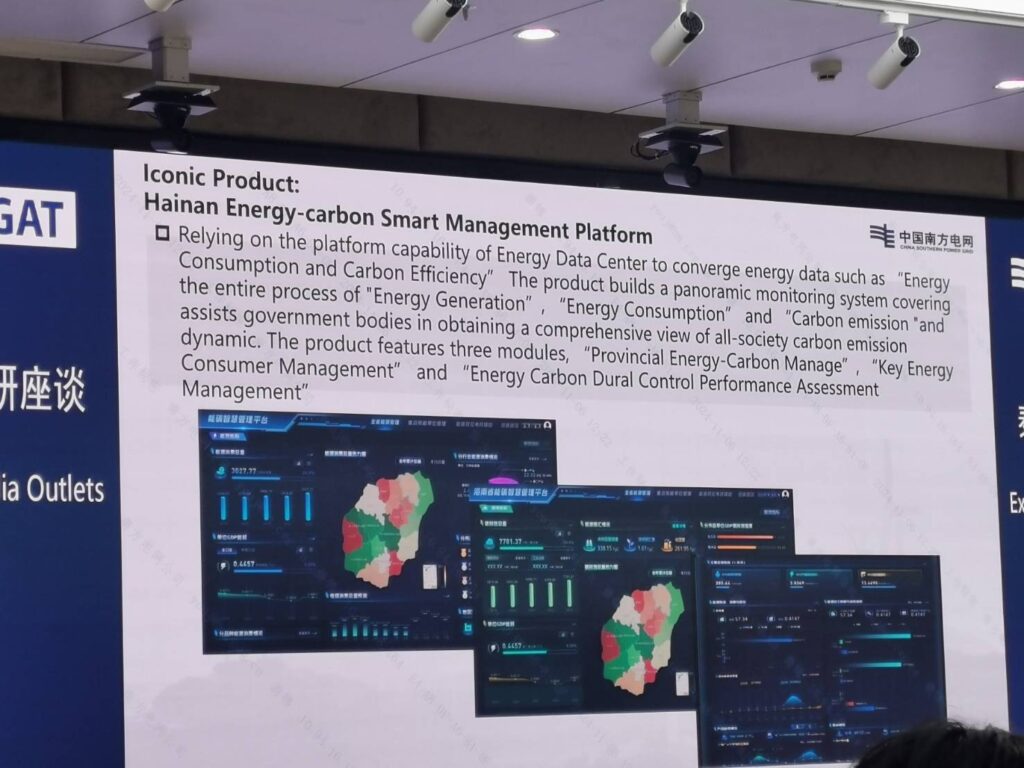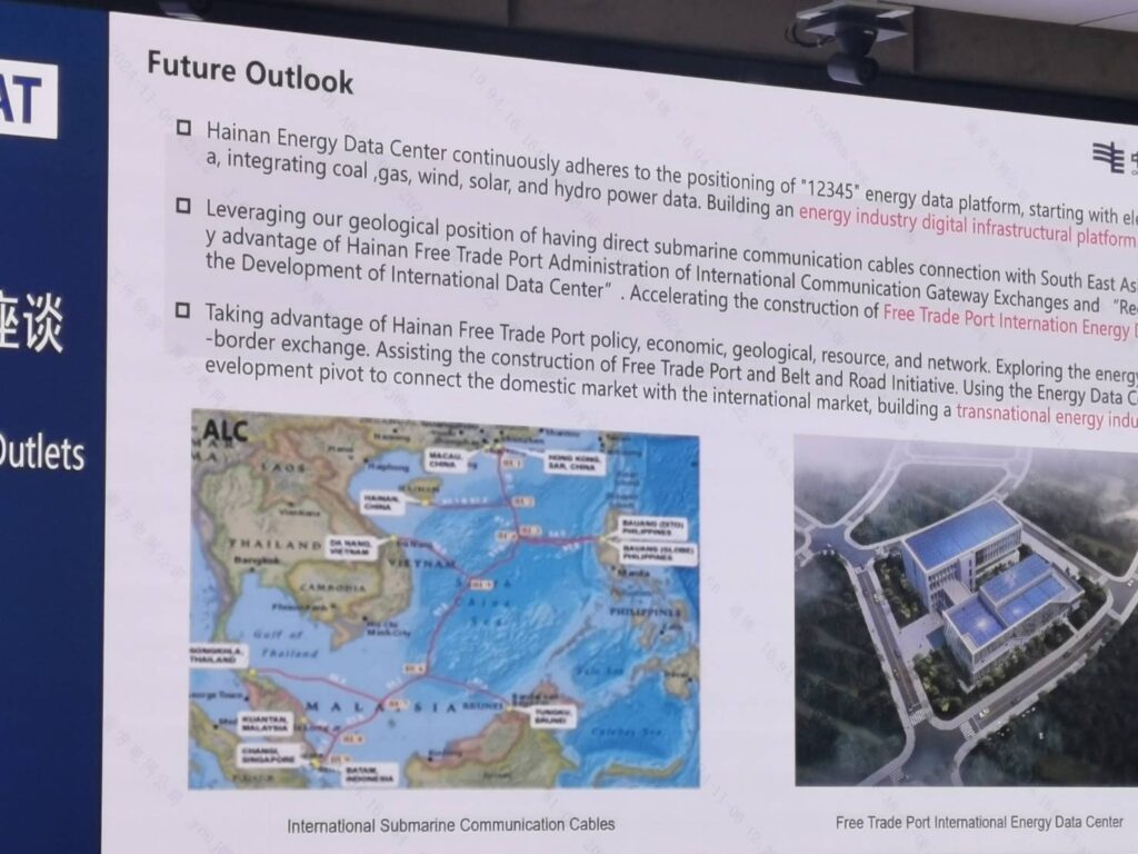 ทั้งนี้ Hainan Energy Data Center ติดตามข้อมูลการใช้พลังงานของประชากรและบริษัทอุตสาหกรรมทั้งในปัจจุบันและอดีต ข้อมูลสมดุลการผลิตและใช้พลังงานของมณฑลไห่หนาน การปล่อยก๊าซคาร์บอนไดออกไซด์จากพลังงานที่ใช้ในพื้นที่ต่าง ๆ ได้ รวมทั้งเป็นข้อมูลด้านจีพีเพื่อเป็นข้อมูลด้านเศรษฐกิจตามแผนไห่หนานจะเป็นเกาะพลังงานสะอาดในปี 2573 มีการใช้ RE ราว 60% คาดว่าต้นทุนค่าไฟต่ำลงเพราะมีทั้งนิวเคลียร์, ลม, แสงอาทิตย์และอื่น ๆ