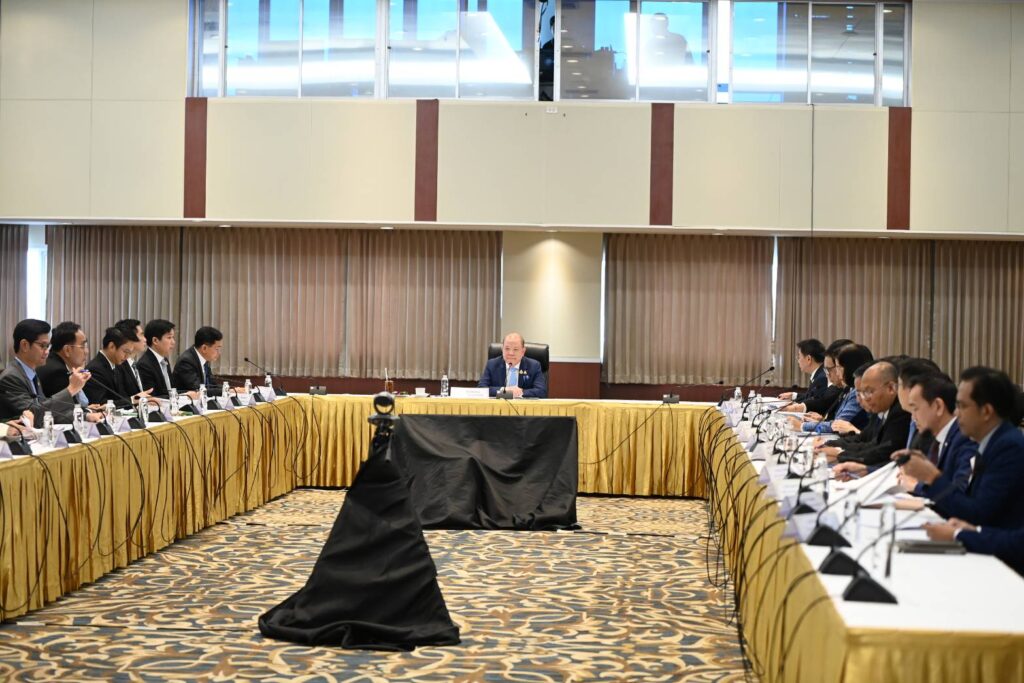 โดยเรื่องหลักวันนี้คือการรับมือการเปลี่ยนแปลงผู้นําของสหรัฐอเมริกา ได้มีการวิเคราะห์กันว่าหลังจากที่ โดนัลด์ ทรัมป์ ชนะการเลือกตั้ง จะส่งผลกระทบกับไทยอย่างไร เชื่อว่าไทยจะได้ประโยชน์จากเรื่องนี้ ไทยเองต้องวาง position ตัวเองให้ดี จากข้อมูลตัวเลขในอดีตที่ผ่านมาเห็นชัดเจนว่า ตัวเลขการส่งออกสินค้าไทยหลายรายการเพิ่มขึ้น ขณะที่การนําเข้าสินค้าจีนของสหรัฐฯลดลงอย่างต่อเนื่อง สินค้าของไทยได้ไปทดแทนค่อนข้างเยอะ เชื่อเป็นอย่างยิ่งว่าเราจะสามารถเพิ่มการส่งออกไปประเทศอเมริกาได้มากขึ้น ขณะนี้ประเทศต่างๆ เดินหน้าเข้ามาเพื่อจะมาเจรจาทำการค้าการลงทุนกับไทยอย่างมาก อีกสัปดาห์หน้าตนเองก็จะเดินทางไปประเทศเปรู เพื่อประชุมเอเปกพร้อมนายกฯ คงได้มีการเจรจากับหลายประเทศ และเชื่อว่าหลายประเทศอยากที่จะมาลงทุนในประเทศไทย และวันที่ 25-27 พ.ย.นี้ สหรัฐฯก็จะนำทัพนักธุรกิจมาไทย ดังนั้นเราต้องวาง position ที่เราเป็นอยู่อย่างนี้ให้ดี ต้องบาลานซ์ให้ได้ ซึ่งจะส่งผลให้จีนก็รักเรา อเมริกาก็รักเรา รัสเซียก็รักเรา middle east ก็รักเรา ไทยไม่ต้องเลือกข้าง เราอยากจะเป็นสวิตเซอร์แลนด์ของอาเซียน ที่ทุกประเทศดีใจและพอใจที่จะมาอยู่กับเรา