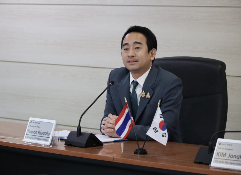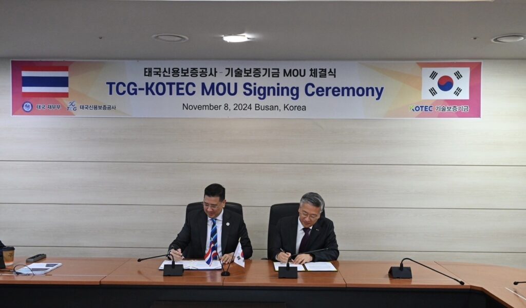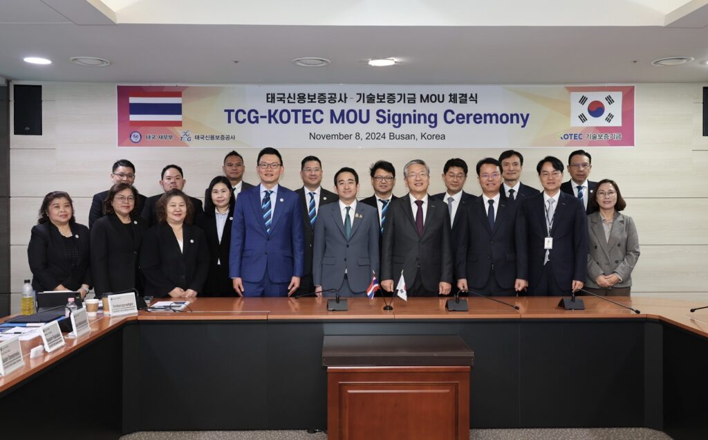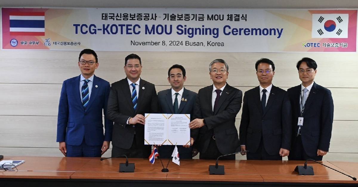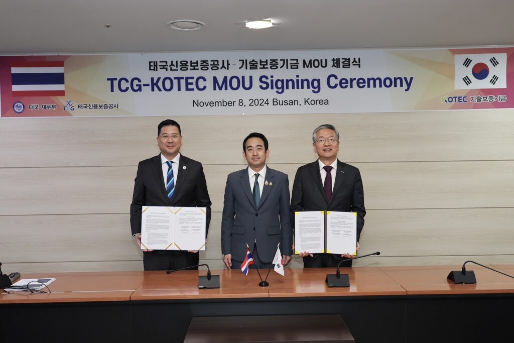 ดร.เผ่าภูมิ โรจนสกุล รัฐมนตรีช่วยว่าการกระทรวงการคลัง เป็นสักขีพยานในพิธีลงนามบันทึกข้อตกลงความร่วมมือ (MOU) ระหว่าง บรรษัทประกันสินเชื่ออุตสาหกรรมขนาดย่อม (บสย.) กับ Korea Technology Finance Corporation (KOTEC) สถาบันค้ำประกันสำหรับผู้ประกอบการที่มีเทคโนโลยีและนวัตกรรม สาธารณรัฐเกาหลี โดยมีนายสิทธิกร ดิเรกสุนทร กรรมการและผู้จัดการทั่วไป บสย. เป็นผู้ร่วมลงนามกับ Mr. KIM Jong Ho Chairman and President of Korea Technology Finance Corporation (KOTEC) ณ Korea Technology Finance Corporation (KOTEC) สำนักงานใหญ่ เมืองปูซาน สาธารณรัฐเกาหลี เพื่อยกระดับและพัฒนาการค้ำประกันสินเชื่อให้กับผู้ประกอบการด้านเทคโนโลยีและนวัตกรรม หรือกลุ่มสตาร์ทอัพ ที่ต้องการรับคำปรึกษาและเข้าถึงแหล่งเงินทุนเพื่อสร้างธุรกิจ การศึกษาวิจัยและพัฒนาผลิตภัณฑ์ รวมถึง Green Technology โดยเริ่มตั้งแต่การให้คำปรึกษา กำหนดแนวทาง และสนับสนุนการเข้าถึงแหล่งเงินทุนที่มีต้นทางการเงินที่เหมาะสม เพื่อยกระดับและสร้างขีดความสามารถทางเทคโนโลยี ศักยภาพในการทำตลาด และโอกาสของธุรกิจต่อยอดเทคโนโลยีในอนาคต