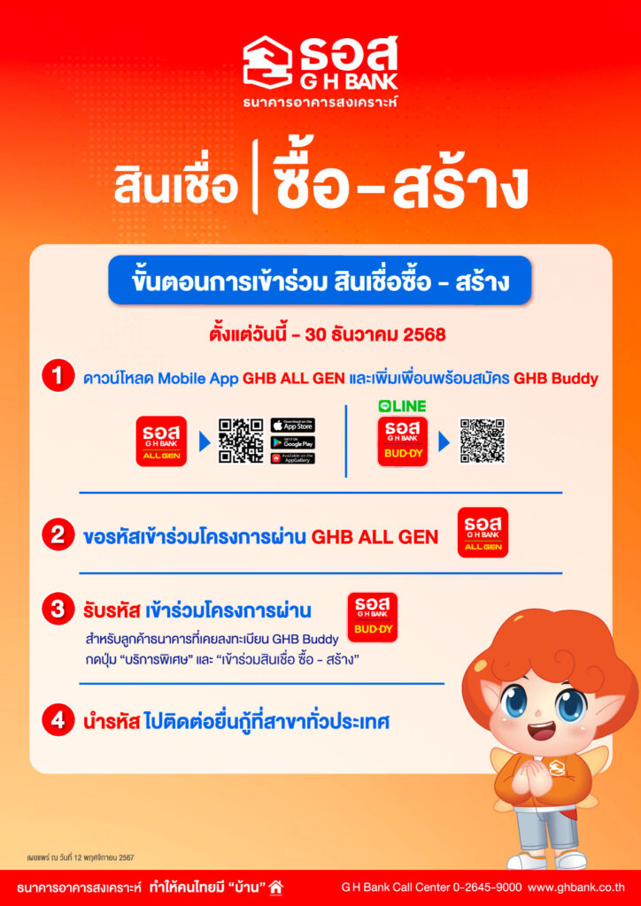 ทำเนียบฯ 12 พ.ย. – ครม.เห็นชอบ ธอส.ปล่อยกู้ “ซื้อ- ซ่อม-สร้าง” เงื่อนไขผ่อนปรน วงเงิน 5.5 หมื่นล้านบาท หนุนรายย่อยมีบ้าน