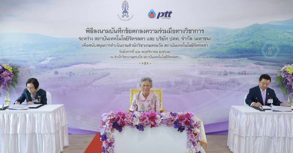 สมเด็จพระกนิษฐาธิราชเจ้า กรมสมเด็จพระเทพรัตนราชสุดาฯ สยามบรมราชกุมารี เสด็จพระราชดำเนินเป็นองค์ประธานในพิธีลงนามบันทึกข้อตกลงความร่วมมือทางวิชาการ ระหว่างสถาบันเทคโนโลยีจิตรลดา กับ บริษัท ปตท. จำกัด (มหาชน) ณ อาคารรัตนเกษตร สำนักวิชาเกษตรนวัต สถาบันเทคโนโลยีจิตรลดา ตำบลป่ายุบใน อำเภอวังจันทร์ จังหวัดระยอง โดยมี รองศาสตราจารย์ ดร.คุณหญิงสุมณฑา พรหมบุญ อธิการบดีสถาบันเทคโนโลยีจิตรลดา, ผู้ช่วยศาสตราจารย์ ดร.สันทนีย์ ผาสุข รองอธิการบดีสถาบันเทคโนโลยีจิตรลดา, นายฉัตรชัย พรหมเลิศ ประธานกรรมการ บริษัท ปตท.จำกัด (มหาชน) ,ดร.คงกระพัน อินทรแจ้ง ประธานเจ้าหน้าที่บริหารและกรรมการผู้จัดการใหญ่ ปตท. พร้อมด้วยข้าราชการ ผู้บริหาร และพนักงานเฝ้าทูลละอองพระบาทรับเสด็จฯ