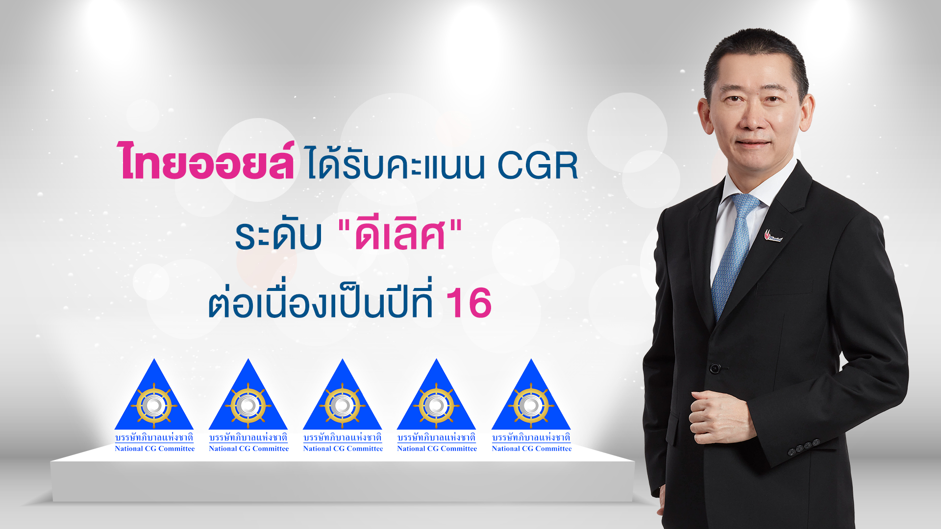 สำหรับการประเมิน CGR ดำเนินการโดยสมาคมส่งเสริมสถาบันกรรมการบริษัทไทย (IOD) ที่ได้รับการสนับสนุนจากตลาดหลักทรัพย์แห่งประเทศไทย (SET)คะแนนการประเมินนี้สะท้อนให้เห็นถึงการดำเนินธุรกิจของไทยออยล์ที่ให้ความสำคัญด้านการกำกับดูแลกิจการที่ดีอย่างต่อเนื่อง คำนึงถึงผู้มีส่วนได้เสียทุกภาคส่วน เปิดเผยข้อมูลอย่างโปร่งใส ตรวจสอบได้ ตามแนวทางการดำเนินธุรกิจที่ยั่งยืน สอดคล้องกับแนวคิด ESG (Environment, Social and Governance) สร้างความเชื่อมั่นให้กับนักลงทุน ควบคู่ไปกับการมีความรับผิดชอบต่อสังคมและสิ่งแวดล้อม -511-สำนักข่าวไทย