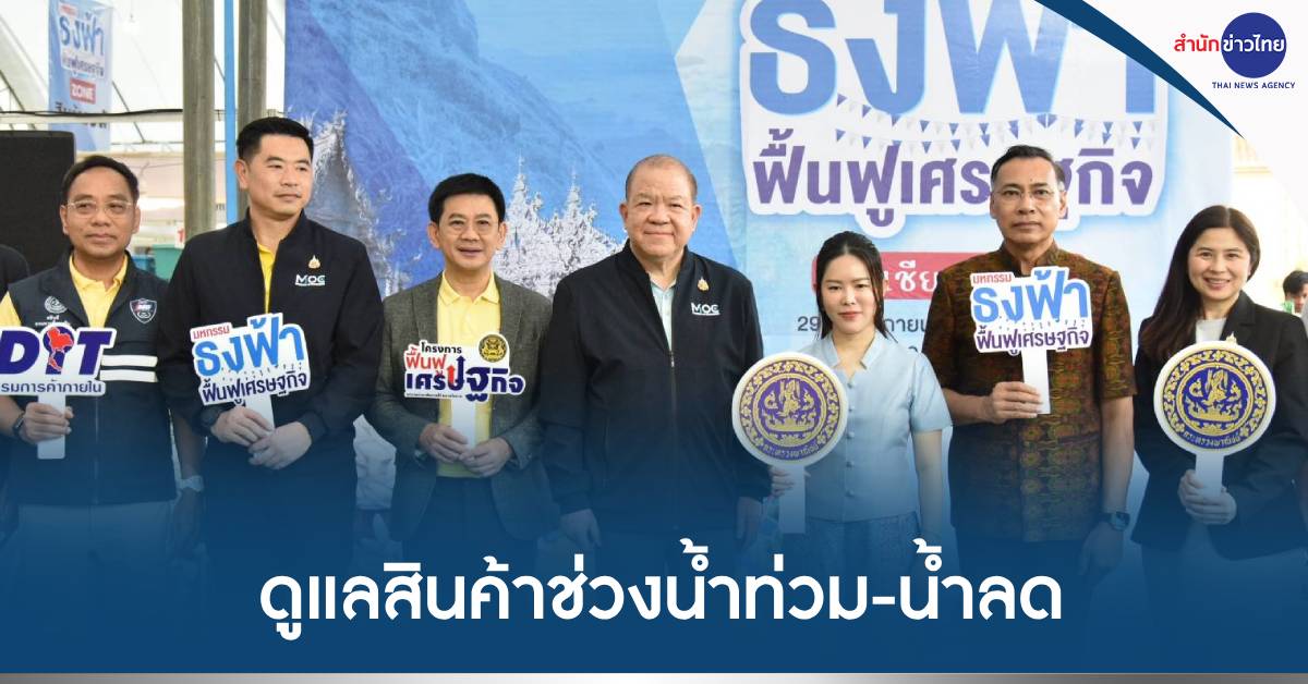 นายพิชัย นริพทะพันธุ์ รัฐมนตรีว่าการกระทรวงพาณิชย์ เป็นประธานเปิดงานมหกรรมธงฟ้าฟื้นฟูเศรษฐกิจ จังหวัดเชียงรายในวันนี้ระบุจัดงาน เพื่อช่วยลดภาระค่าครองชีพให้กับพี่น้องประชาชน โดยจัดบริเวณลานหลังเทศบาลตำบลเมืองพาน อ.พาน จ.เชียงราย ภายในงาน มีการนำสินค้าอุปโภคบริโภคที่จำเป็นต่อการครองชีพมาจำหน่ายรวม 10 หมวด กว่า 500 รายการ ลดสูงสุด 70% สำหรับคนฉลาดเลือก อาทิ บะหมี่กึ่งสำเร็จรูป ปลากระป๋อง ซอสปรุงรส น้ำยาซักผ้า ของใช้ประจำวัน เครื่องแต่งกาย อุปกรณ์ช่าง สินค้าซ่อมแซมบ้าน สินค้าทำความสะอาดบ้านเรือน สินค้าชุมชน เป็นต้น