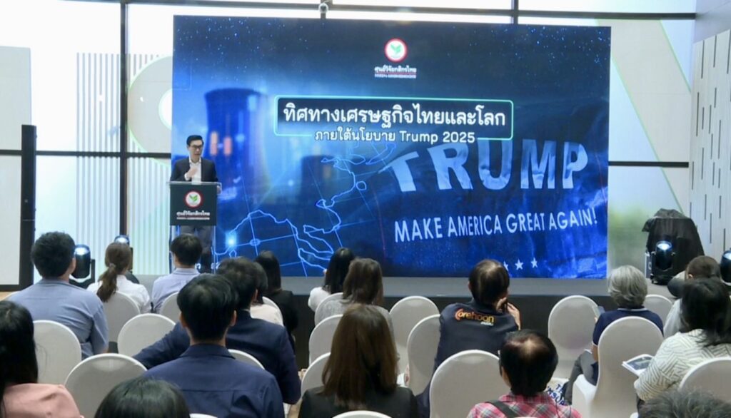 นายบุรินทร์ อดุลวัฒนะ กรรมการผู้จัดการ และ Chief Economist บริษัท ศูนย์วิจัยกสิกรไทย จำกัด กล่าวถึงทิศทางเศรษฐกิจในปี 2568 ว่าการกลับมาอีกครั้งของประธานาธิบดีโดนัลด์ ทรัมป์ ได้สร้างความไม่แน่นอนขึ้นมาต่อการลงทุนและการค้าโลก โดยเฉพาะนโยบายการขึ้นภาษีนำเข้าที่ต้องรอความชัดเจนในต้นปีหน้า ก่อให้เกิดความกังวล ว่า เศรษฐกิจโลกจะซบเซาเหมือนช่วงทศวรรษ 1930 นอกจากนั้นนโยบายอเมริกาเฟิร์สท์ จะทำให้มีการเปลี่ยนระเบียบโลก (Global Order) สร้างความเสี่ยงต่อองค์กรระหว่างประเทศ อย่างเช่น WTO และ NATO