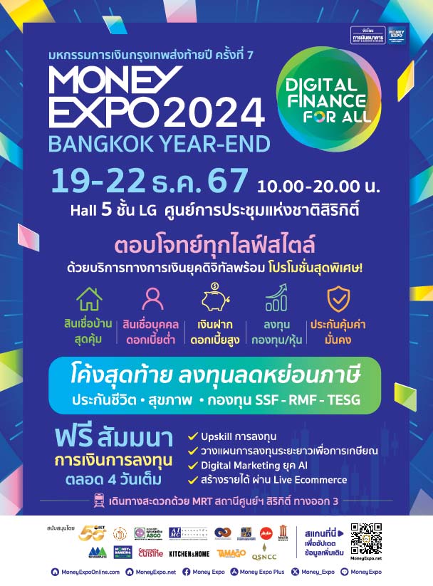 นางสาวภาคนี วิริยะรังสฤษฎ์ ประธานจัดงานร่วม งานมหกรรมการเงิน Money Expo เปิดเผยว่า วารสารการเงินธนาคารจะจัดงานมหกรรมการเงินกรุงเทพส่งท้ายปี ครั้งที่ 7 MONEY EXPO 2024 BANGKOK YEAR-END ในวันที่ 19-22 ธันวาคม 2567 ณ ฮอลล์ 5 ชั้น LG ศูนย์การประชุมแห่งชาติสิริกิติ์ ภายใต้แนวคิด “Digital Finance for All การเงินดิจิทัลเพื่อทุกคน” สอดรับกับนโยบายการเงินของภาครัฐและธนาคารแห่งประเทศไทย ที่ประเทศไทยกำลังก้าวเข้าสู่ยุค “การเงินดิจิทัล (Digital Finance)”