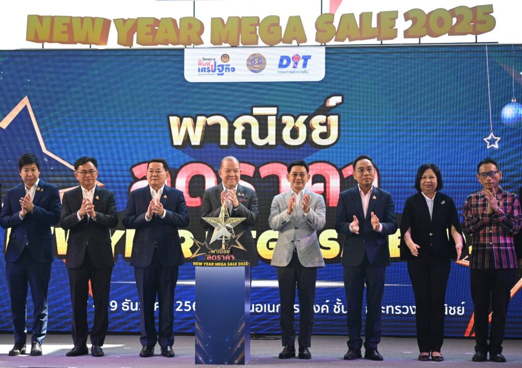 นายพิชัย นริพทะพันธุ์ รัฐมนตรีว่าการกระทรวงพาณิชย์ เปิดเผยว่า กระทรวงพาณิชย์ร่วมมือกับผู้ผลิตสินค้าผู้จำหน่าย ร้านสะดวกซื้อ ห้างค้าปลีกค้าส่ง ห้างสรรพสินค้า ทั่วประเทศ กว่า 44,919 สาขา และแพลตฟอร์มออนไลน์ กว่า 300 ราย ยกทัพสินค้าราคาถูกกว่า 40,000 รายการ สูงสุดถึง 80% ตั้งแต่ 17 ธ.ค.67-31 ม.ค.68 ร่วม 46 วัน เพื่อช่วยลดค่าครองชีพคนไทยทั้งประเทศกว่า 4,800 ล้านบาท และกระตุ้นเศรษฐกิจกว่า 14,400 ล้านบาท ส่งมอบความสุขข้ามปีในช่วงเทศกาลปีใหม่ โดยเปิดงาน Kick Off “พาณิชย์ลดราคา New Year Mega Sale 2025” ภายใต้โครงการฟื้นฟูเศรษฐกิจของรัฐบาล เปิดงานที่ ลานอเนกประสงค์ ชั้น 3 กระทรวงพาณิชย์