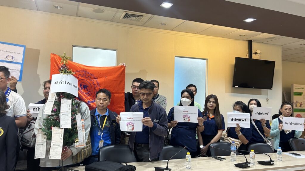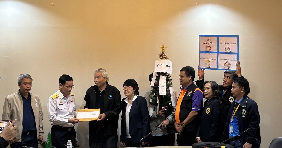 สำนักงาน กกพ. 25 ธ.ค. – สภาองค์กรของผู้บริโภค พร้อมภาคีเครือข่าย บุกสำนักงาน กกพ. เรียกร้องให้ยุติการทำสัญญา และยกเลิกประกาศรายชื่อผู้ผ่านการคัดเลือกในโครงการไฟฟ้าหมุนเวียนเฟส 2 ชี้ทำค่าไฟแพงเกินเหตุ และตลอดอายุสัญญา 25 ปี ประชาชนต้องจ่ายค่าไฟสูงถึง 6.5 หมื่นล้านบาท