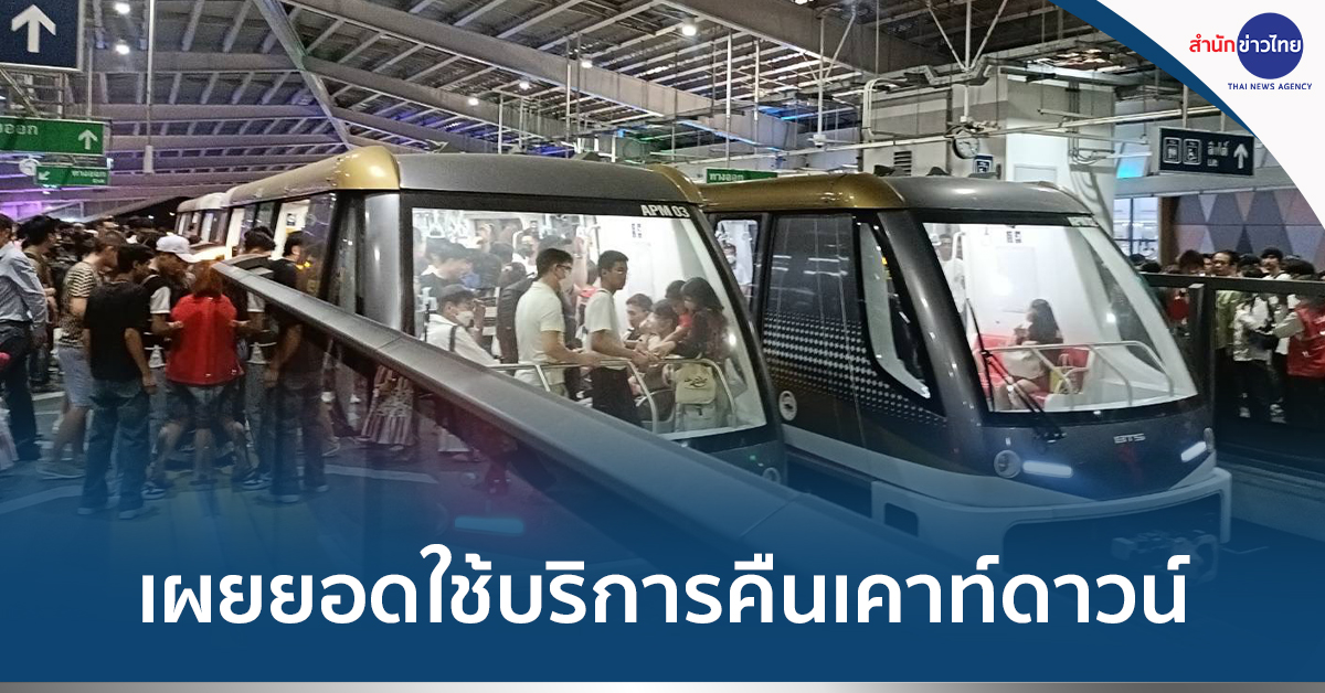 - 2.5 รถไฟฟ้า BTS สายสีเขียว (สายสุขุมวิทและสายสีลม) ให้บริการ 1,085 เที่ยว มีผู้ใช้บริการจำนวน 789,430 คน-เที่ยว (มากกว่าวันที่ 31 ธันวาคม 2567 จำนวน 91,103 คน-เที่ยว หรือเพิ่มขึ้นร้อยละ 13.05)
