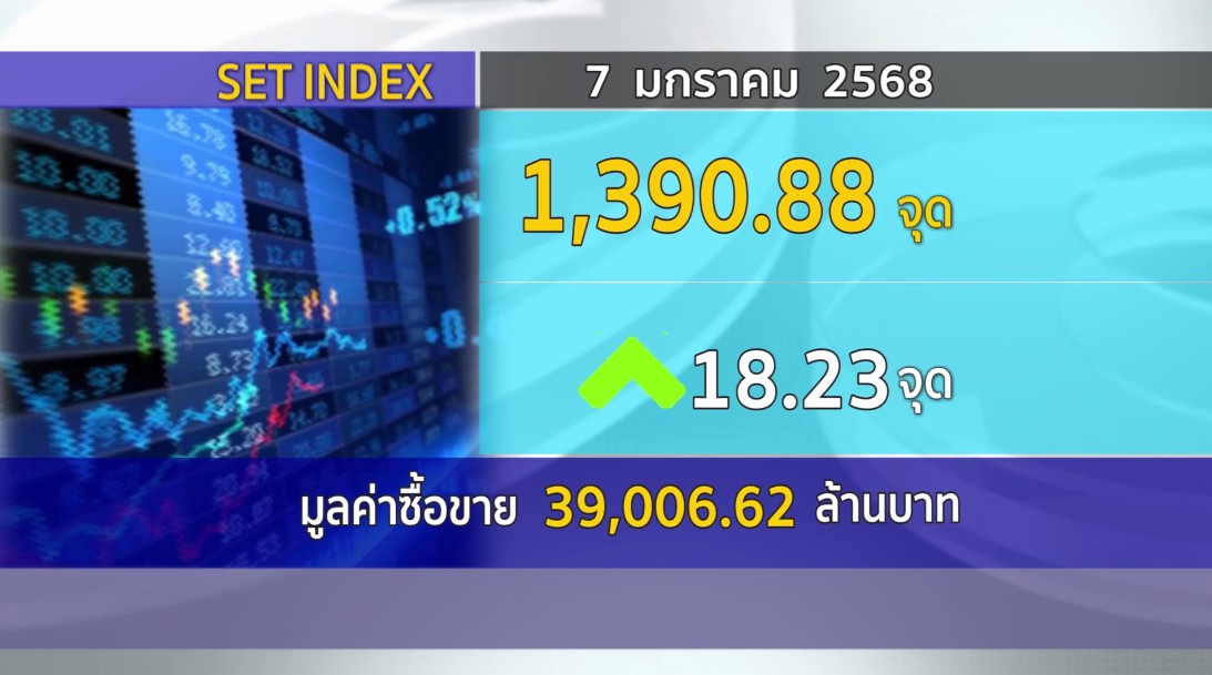 7 ม.ค. – SET ปิดวันนี้ที่ 1,390.88 จุด เพิ่มขึ้น 18.23 จุด (+1.33%) มูลค่าซื้อขายราว 39,119.77 ล้านบาท