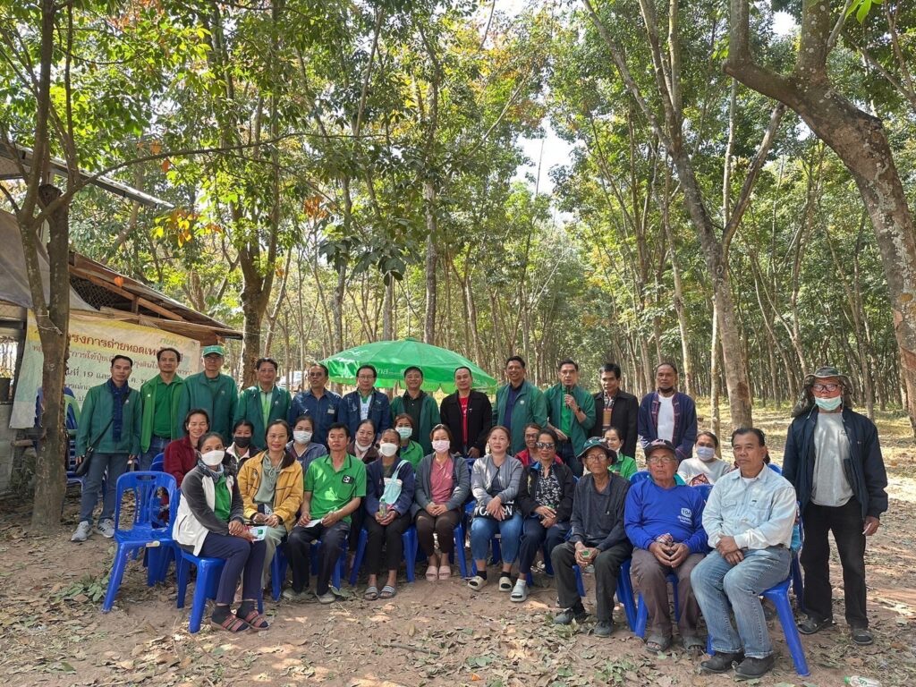 นายเกียรติศักดิ์ พระวร ผู้ช่วยผู้จัดการธนาคารเพื่อการเกษตรและสหกรณ์การเกษตร (ธ.ก.ส.) นำคณะเจ้าหน้าที่จากการยางแห่งประเทศไทย และสำนักจัดการทรัพยากรป่าไม้ที่ 6 กรมป่าไม้ ลงพื้นที่ศึกษาดูงานการดำเนินงานโครงการ BAAC Carbon Credit และการใช้ต้นยางพาราเป็นหลักประกัน ณ ชุมชนบ้านกุดหมากไฟ จ.อุดรธานี และสหกรณ์กองทุนสวนยางโนนสัง จ.หนองบัวลำภู ซึ่งถือเป็นส่วนหนึ่งของการดำเนินงานสู่ความเป็นกลางทางคาร์บอน และลดการปล่อยก๊าซเรือนกระจกสุทธิเป็นศูนย์ภายในปี ค.ศ 2065