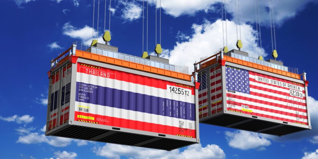 สหรัฐฯ เป็นตลาดส่งออกอันดับ 1 ของไทย มีสัดส่วนราว 18% ของมูลค่าส่งออกทั้งหมด โดยปี 2567 มีมูลค่า 54,956.2 ล้านดอลลาร์สหรัฐ ขณะที่การนำเข้า สหรัฐฯ เป็นแหล่งนำเข้าอันดับ 4 ของไทย มีสัดส่วนราว 6% ของมูลค่านำเข้าทั้งหมด หรือมีมูลค่า 19,528.6 ล้านดอลลาร์สหรัฐ โดยรวมไทยเกินดุลการค้ากับสหรัฐฯ 35,427.6 ล้านดอลลาร์สหรัฐ อยู่อันดับที่ 12 ของโลก โดยกลุ่มสินค้าไทยที่มีความเสี่ยงอาจถูกสหรัฐฯ พิจารณาใช้มาตรการทางภาษีมีประมาณ 29 กลุ่มสินค้า เนื่องจากพบสถิติการค้าที่สหรัฐฯ ขาดดุลการค้ากับไทยมากขึ้นในช่วง 5 ปีที่ผ่านมา (ปี 61 – 66) เช่น เครื่องคอมพิวเตอร์และส่วนประกอบ, เครื่องโทรศัพท์มือถือ, ไดโอด ทรานซิสเตอร์และอุปกรณ์กึ่งตัวนำแบบไวแสง (โซลาร์เซลล์), ยางนอกชนิดอัดลมที่เป็นของใหม่, หม้อแปลงไฟฟ้า เครื่องเปลี่ยนไฟฟ้าชนิดอยู่คงที่, เครื่องปรับอากาศ, เครื่องพิมพ์ที่ป้อนกระดาษเป็นม้วน, เครื่องส่งสัญญาณวิทยุโทรทัศน์, วงจรรวมอิเล็กทรอนิกส์, เครื่องเพชรพลอยและรูปพรรณและส่วนประกอบของของดังกล่าว นอกจากนี้ ยังมีรายการกลุ่มสินค้าอื่น ๆ ที่อาจมีฃความเสี่ยงโดนเก็บภาษีเช่นกัน เช่น เครื่องจักรไฟฟ้า ตู้เย็นตู้แช่แข็ง เฟอร์นิเจอร์และส่วนประกอบ ผลิตภัณฑ์จากไม้ รวมถึงสินค้าเกษตรและเกษตรแปรรูปบางรายการ อาทิ ปลาสด แช่เย็น แช่แข็ง ขนมหวานที่ไม่มีส่วนผสมจากโกโก้ ขณะเดียวกัน สหรัฐฯ เองก็ได้จับตาประเทศที่มีกลุ่มทุนจีนเข้าไปลงทุนเพื่อตั้งฐานการผลิต เพราะต้องการเลี่ยงสงครามการค้า และมาตรการทางภาษีจากสหรัฐฯ โดยประเทศปลายทางที่จีนเข้าไปลงทุนเพิ่มเติม (Greenfield FDI) มากเป็น 10 อันดับแรก ในปี 66 ได้แก่ ซาอุดีอาระเบีย มาเลเซีย เวียดนาม โมร็อกโก คาซัคสถาน อียิปต์ อินโดนีเซีย อาร์เจนตินา เซอร์เบีย และเม็กซิโก