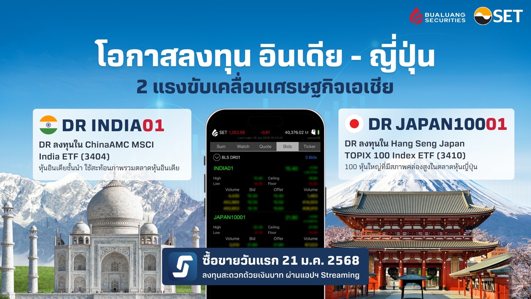ตลาดหลักทรัพย์ฯ รับจดทะเบียน DR ใหม่ 2 หลักทรัพย์ ได้แก่ “INDIA01” และ “JAPAN10001” ออกโดยบริษัทหลักทรัพย์ บัวหลวง จำกัด (มหาชน) โดย DR “INDIA01” อ้างอิงกองทุน ChinaAMC MSCI India ETF ที่ลงทุนในหุ้นอินเดียขนาดใหญ่และขนาดกลางตามดัชนี MSCI India Net Total Return (USD)และ DR “JAPAN10001” อ้างอิงกองทุน Hang Seng Japan TOPIX 100 Index ETF ที่ลงทุนในหุ้นญี่ปุ่นขนาดใหญ่ 100 แห่ง ตามดัชนี TOPIX 100 โดยDR ทั้งสองอ้างอิงกองทุน ETF ที่จดทะเบียนอยู่ในตลาดหลักทรัพย์ฮ่องกง และจะเริ่มซื้อขายในตลาดหลักทรัพย์ฯ ตั้งแต่วันที่ 21 มกราคม 2568 เป็นต้นไป