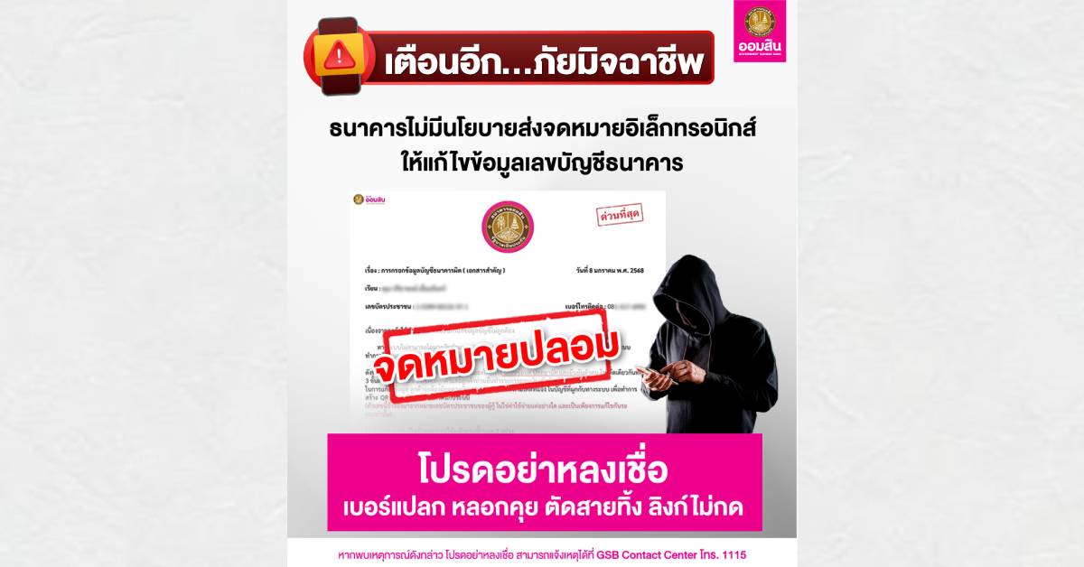 กรุงเทพฯ 21 ม.ค. – ออมสินเตือน! มุขใหม่มิจฉาชีพ ปลอมเอกสารเหมือนธนาคารส่งเป็นจดหมาย แนะต้องเช็คธนาคารทุกครั้งว่าจริงหรือมั่ว ก่อนสูญเงินหมดตัว