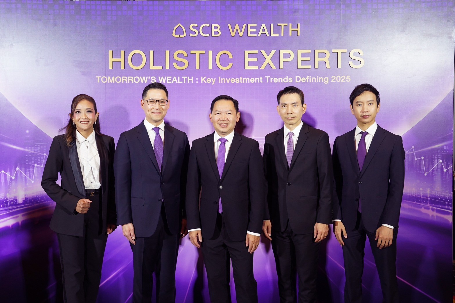 นายศรชัย สุเนต์ตา, CFA รองผู้จัดการใหญ่ ผู้บริหารสายงาน Wealth & Investment Product ธนาคารไทยพาณิชย์ เปิดเผยว่า SCB WEALTH จัดงาน SCB WEALTH Holistic Experts ในหัวข้อ“Tomorrow’s Wealth: Key Investment Trends Defining 2025” เพื่อมุ่งเน้นให้ข้อมูลเชิงลึกเกี่ยวกับแนวโน้มเศรษฐกิจ และการลงทุน รวมถึงโอกาสและความเสี่ยงที่นักลงทุนจะต้องจับตามองในปี 2568 พร้อมโซลูชั่นการลงทุนที่สอดคล้องกับสถานการณ์เศรษฐกิจและตลาดทุนที่เปลี่ยนแปลงอย่างรวดเร็ว โดยทีมผู้เชี่ยวชาญด้านการลงทุนที่ครอบคลุมทุกมิติทั้งด้านเศรษฐกิจ และการลงทุน ที่สามารถให้คำแนะนำครบทุกองค์รวมของ SCB WEALTH Holistic เพื่อให้นักลงทุนสามารถวางแผนการลงทุนได้อย่างมั่นใจและมีประสิทธิภาพ SCB WEALTH ยึดลูกค้าเป็นศูนย์กลาง (Customer Centric) มุ่งให้คำปรึกษาเพื่อคัดสรรผลิตภัณฑ์ให้ตอบโจทย์ลูกค้าแต่ละรายในทุกช่วง State of life เพื่อสะสมความมั่งคั่งอย่างต่อเนื่อง และมีอนาคตทางการเงินที่แข็งแกร่งเมื่อเข้าสู่วัยเกษียณ พร้อมส่งต่อมรดก และความมั่งคั่งให้กับสมาชิกในครอบครัวรุ่นต่อไปได้อย่างมั่นคง และยั่งยืน