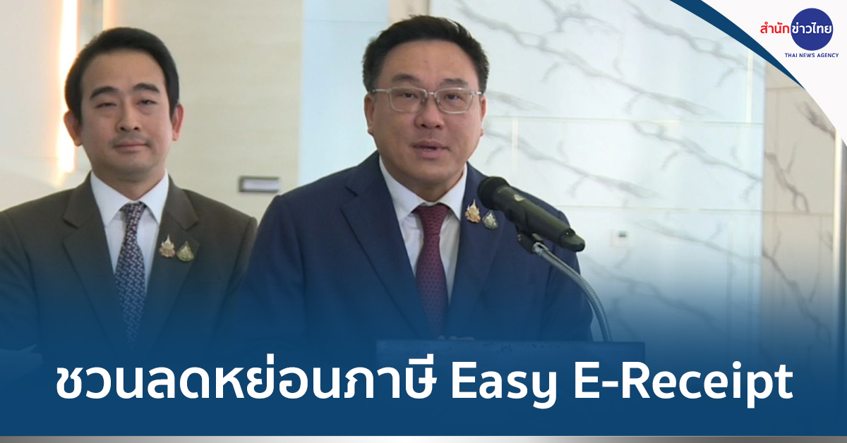 ก.คลัง 22 ม.ค. – “จุลพันธ์” ชวนประชาชน ร้านค้า ร่วมลดหย่อนภาษีผ่าน Easy E-Receipt ปลื้ม! คนร่วมโครงการคึกคัก หวังเงิน 7 หมื่นล้านกระตุ้นเศรษฐกิจ