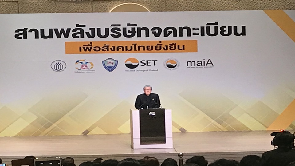 นายสมคิด จาตุศรีพิทักษ์ รองนายกรัฐมนตรี กล่าวปาฐกถาพิเศษในงานสัมมนา “สานพลังบริษัทจดทะเบียนไทย