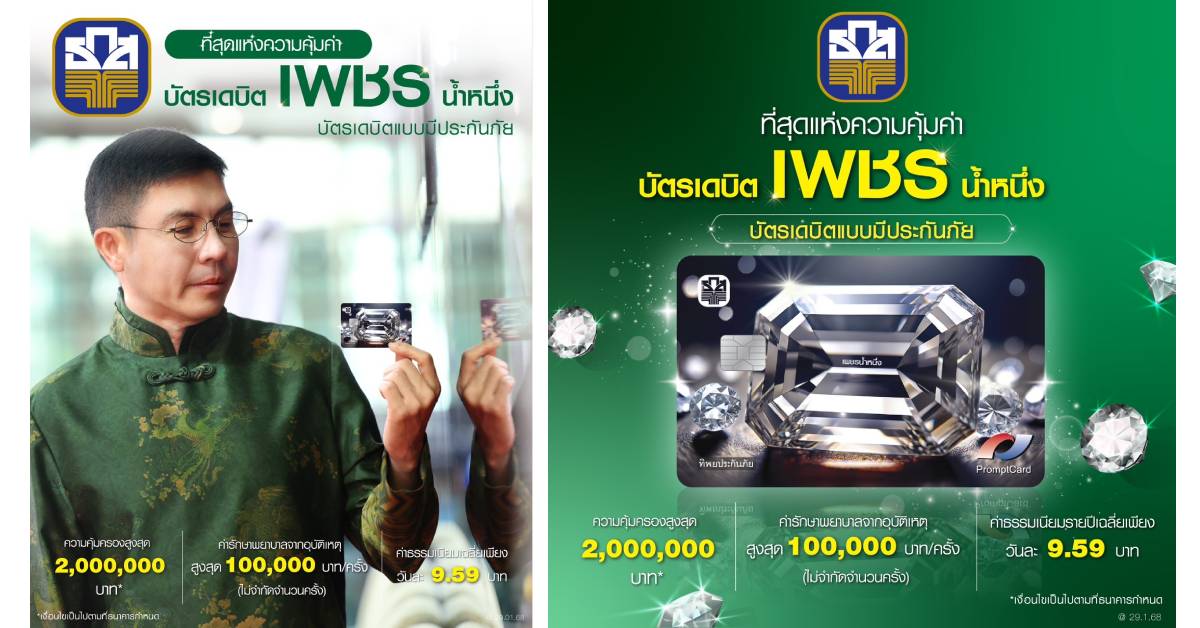 นายฉัตรชัย ศิริไล ผู้จัดการธนาคารเพื่อการเกษตรและสหกรณ์การเกษตร (ธ.ก.ส.) กล่าวว่า ธ.ก.ส. เปิดตัว “บัตรเดบิตเพชรน้ำหนึ่ง” บัตรเดบิตมีประกันอุบัติเหตุที่มาพร้อมความคุ้มค่าและสิทธิประโยชน์ที่ครอบคลุมทุกความต้องการด้านสุขภาพให้ผู้ถือบัตรอุ่นใจในทุกสถานการณ์ วงเงินคุ้มครอง 1,000,000 บาท พร้อมสิทธิประโยชน์ในการเบิกค่ารักษาพยาบาลจากอุบัติเหตุ ไม่จำกัดจำนวนครั้ง สูงสุด 100,000 บาทต่อครั้ง