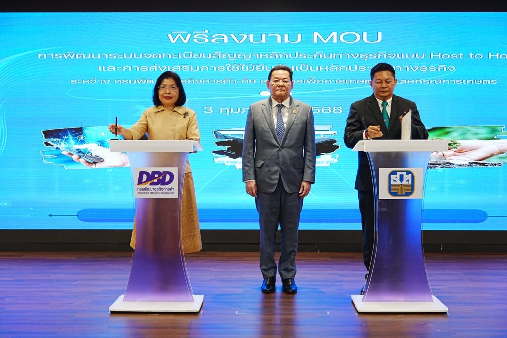 กรุงเทพฯ 3 ก.พ.- กรมพัฒนาธุรกิจการค้า MOU กับ ธ.ก.ส. ใช้ไม้ยืนต้นเป็นทุนเป็นหลักประกันทางธุรกิจ เพิ่มช่องทางการเข้าถึงแหล่งเงินทุนให้ SME และเกษตรกรไทย เผยยอดจดทะเบียนรับไม้ยืนต้นเป็นหลักประกันกว่า 1.67 แสนต้น วงเงินหลักประกันกว่า 185 ล้านบาท