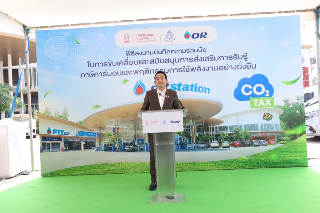 ม.ล.ปีกทอง ทองใหญ่ ประธานเจ้าหน้าที่บริหาร บริษัท ปตท. น้ำมันและการค้าปลีก จำกัด (มหาชน) หรือ OR เปิดเผยว่า ความร่วมมือของ OR กรมสรรพสามิต และคณะเศรษฐศาสตร์ จุฬาลงกรณ์มหาวิทยาลัย ในครั้งนี้เพื่อขับเคลื่อนการรับรู้ภาษีคาร์บอนและพฤติกรรมการใช้พลังงานอย่างยั่งยืน OR พร้อมให้การสนับสนุน สอดคล้องกับนโยบาย OR SDG มุ่งสร้างสมดุลในทุกมิติ โดยเฉพาะด้าน G: Green ที่มุ่งสร้างโอกาสเพื่อสังคมสะอาดและการสนับสนุนให้เกิดสังคมคาร์บอนต่ำอย่างยั่งยืนอีกด้วย