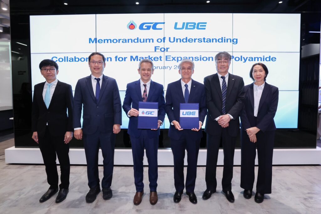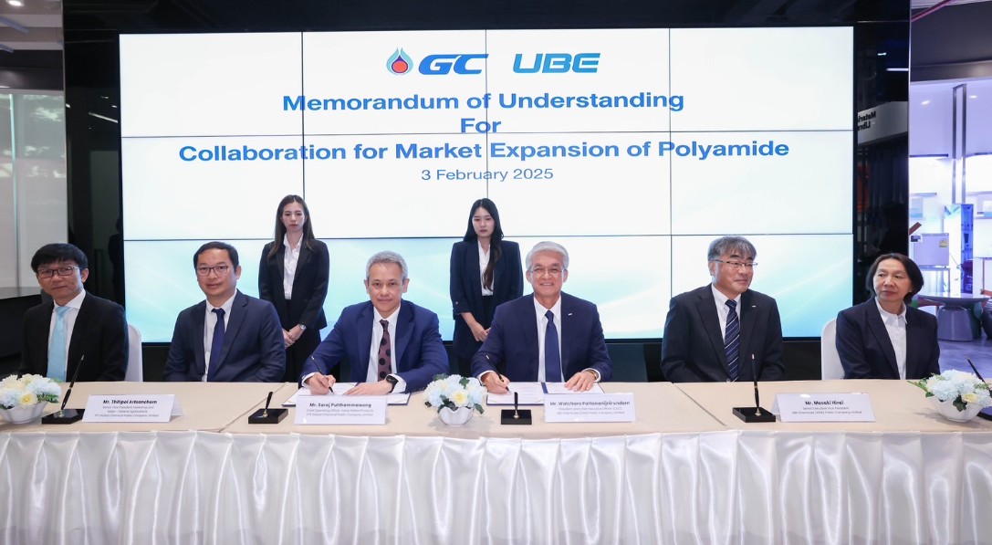 กรุงเทพฯ 5 ก.พ.- บมจ.พีทีที โกลบอล เคมิคอล (GC) และ บมจ.อูเบะ เคมิคอลส์ (เอเชีย) หรือ UCHA ร่วมลงนามในบันทึกข้อตกลงความร่วมมือในการขยายตลาด Polyamide ในกลุ่มอุตสาหกรรมอื่นๆ นอกเหนือจากอุตสาหกรรมยานยนต์ อาทิ อุตสาหกรรมบรรจุภัณฑ์อ่อนตัว (Flexible Packaging) และ เส้นใยยาว (Filament)