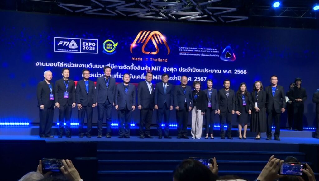 สภาอุตสาหกรรมแห่งประเทศไทย (ส.อ.ท.) ร่วมกับกระทรวงการคลัง จัดกิจกรรม “ปลุกพลังสินค้าและเศรษฐกิจไทยด้วย MiT” ภายใต้งาน FTI Expo 2025 มหกรรมแสดงศักยภาพอุตสาหกรรมไทยเพื่ออนาคตที่ยั่งยืน เพื่อส่งเสริมสินค้า Made in Thailand (MiT) และสนับสนุนผู้ประกอบการไทยให้สามารถแข่งขันในตลาดทั้งในประเทศและระดับสากล ณ ศูนย์การประชุมแห่งชาติสิริกิติ์ ภายในงาน ได้มีการมอบโล่ประกาศเกียรติคุณแก่ 10 หน่วยงานรัฐ ที่สนับสนุนการจัดซื้อสินค้า MiT ด้วยวิธี e-bidding มากที่สุด และ 2 หน่วยงานที่มีบทบาทสำคัญในการผลักดันสินค้าไทยให้เติบโต
