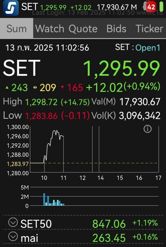 ด้านดลาดหุ้นไทยเมื่อเวลา 11.00 น.ปรับตัวขึ้นกว่า 12 จุด ตามภูมิภาค มีแรงซื้อกลับหุ้นใหญ่ เช่น DELTA ADVANC และมี Sentiment บวก หลัง รมว.คลัง เตรียมพิจารณาในการปรับปรุง LTF ใหม่ ที่ชะลอแรงขายกองทุน LTF ที่คงค้างอยู่ 1.8 แสนล้านบาท โดยจะมีการปรับไปอยู่ในกองทุนไทยอีเอสจี