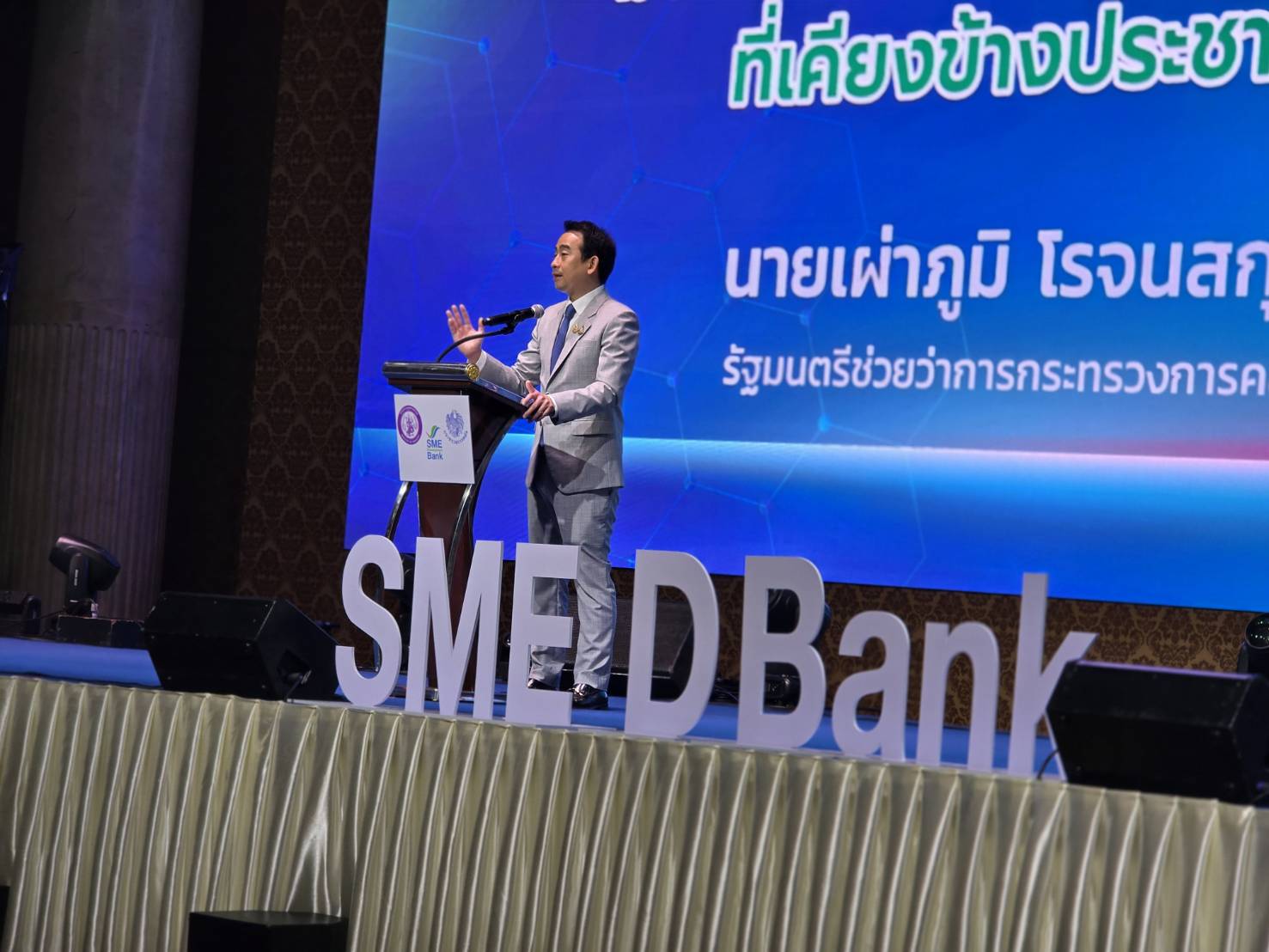 นายเผ่าภูมิ โรจนสกุล รัฐมนตรีช่วยว่าการกระทรวงการคลังปาฐกถาในหัวข้อ “มิติใหม่ของสถาบันการเงินรัฐที่เคียงข้างประชาชน” โดยระบุว่า ธนาคารพัฒนาวิสาหกิจขนาดกลางและขนาดย่อมแห่งประเทศไทย (SME D Bank) เป็นหนึ่งในสถาบันการเงินของรัฐ เป้าหมายหลักไม่ใช่การแสวงหากำไร แต่เป็นการช่วยเหลือประชาชนที่ไม่สามารถเข้าถึงแหล่งทุนจากธนาคารพาณิชย์