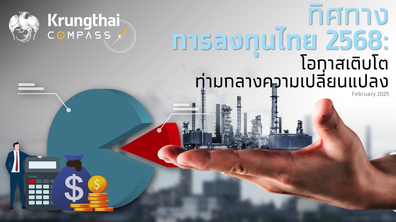 กรุงเทพฯ 19 ก.พ. – ศูนย์วิจัย Krungthai COMPASS ประเมิน GDP ไทยปี 2568 ขยายตัว 2.7% ดีขึ้นจาก 2.5% ในปีที่ผ่านมา มีแรงหนุนส่วนหนึ่งมาจากการลงทุนภาคเอกชนที่มีแนวโน้มกลับมาเติบโต 3.0% จากที่เคยหดตัว -1.6% ในปี 2567 จากอานิสงส์ของการไหลเข้ามาของเม็ดเงินลงทุนจากต่างประเทศ (FDI)